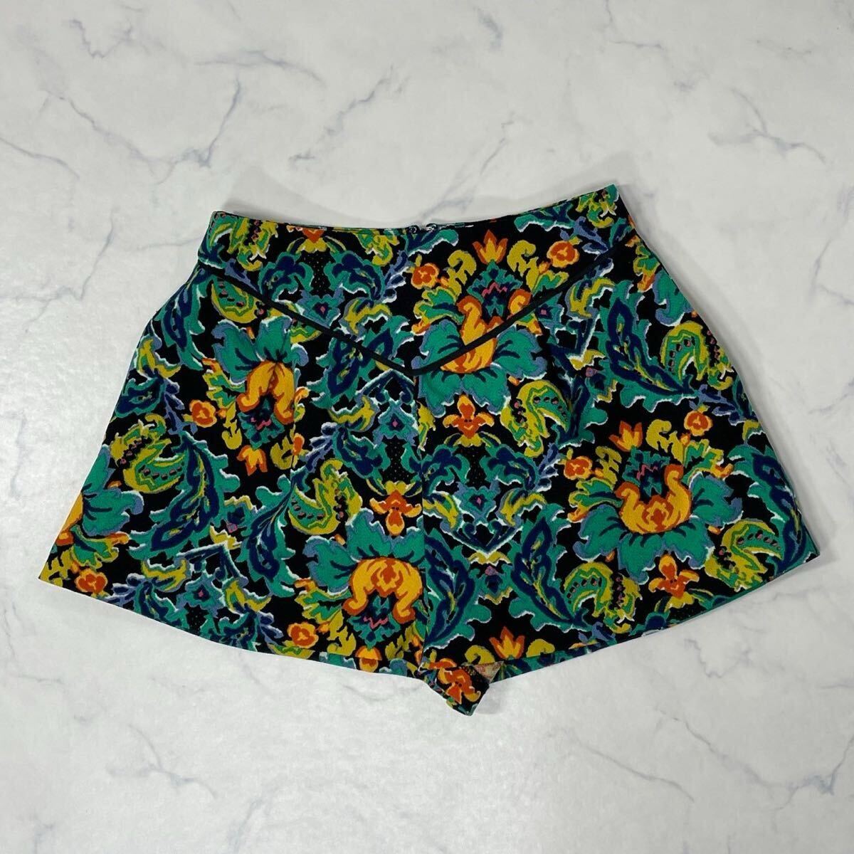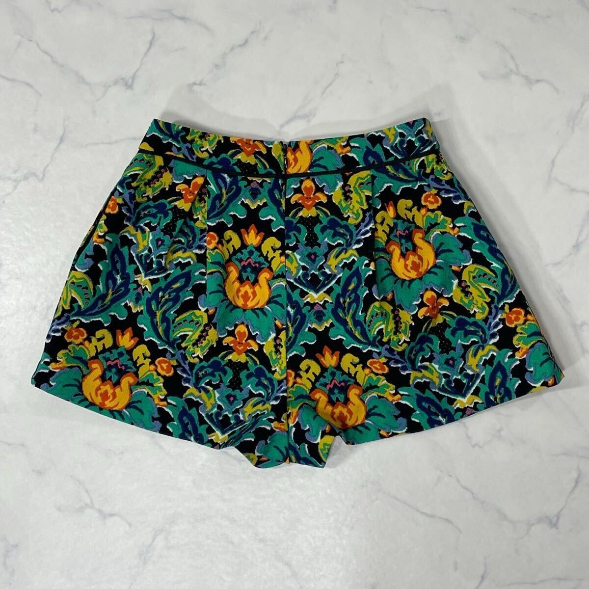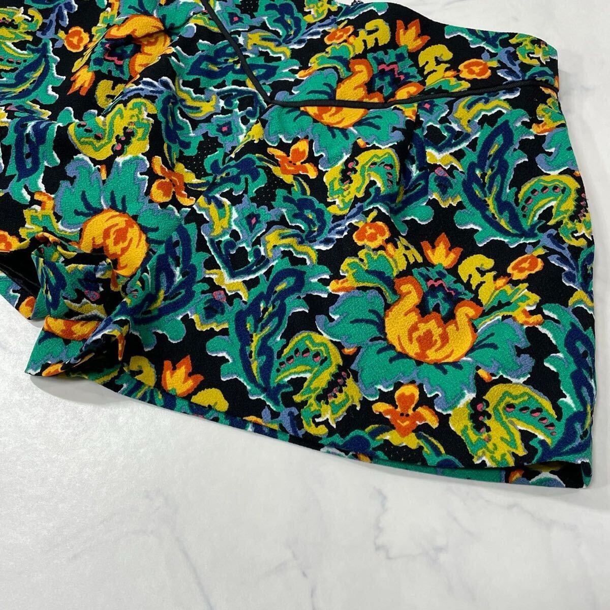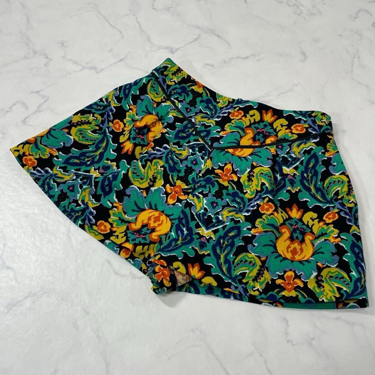 切替 異素材 花柄 ボタニカル 裏地付き ボックス ポケット ジップ ショート パンツ