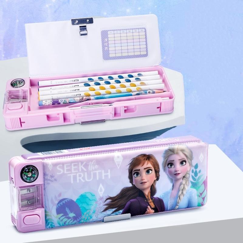ディズニー映画「アナと雪の女王」が描かれた、鮮やかでかわいらしい筆箱です。表面にはアナとエルサの姿が鮮明に描かれています。鮮やかなパステルカラーのデザインが、同作品の冬の世界観を思わせるスタイリッシュな仕上がりとなっています。