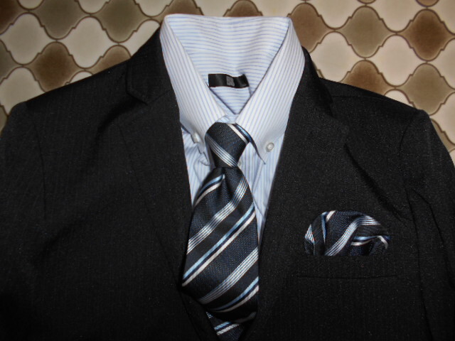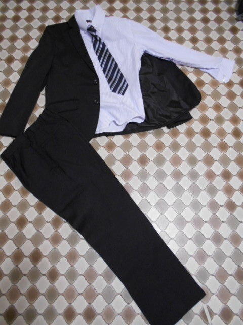 【色】・・・・・・・・黒 ストライプ シャツ白 水色ストライプ |