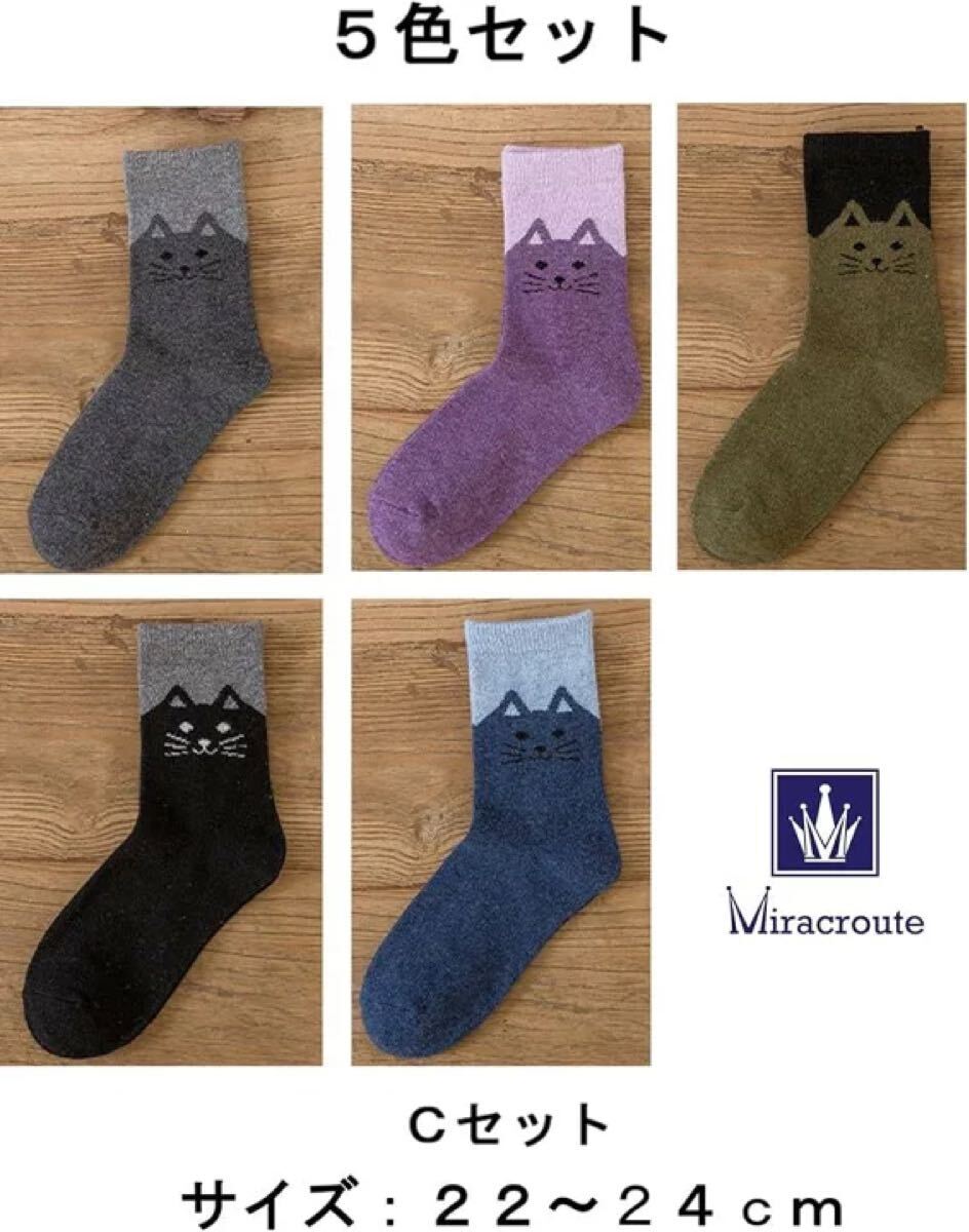 厚手クルーソックス(ブラック、グレー、カーキ、パープル、ブルー)