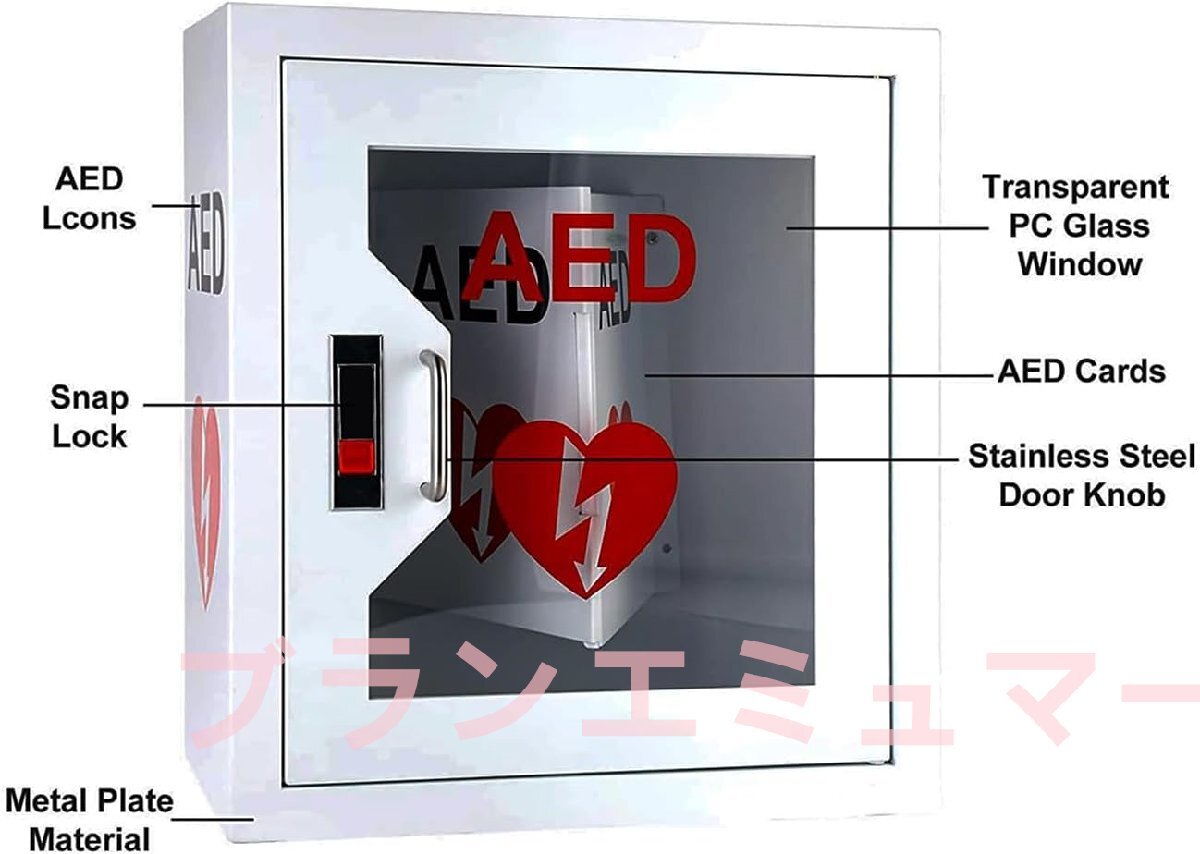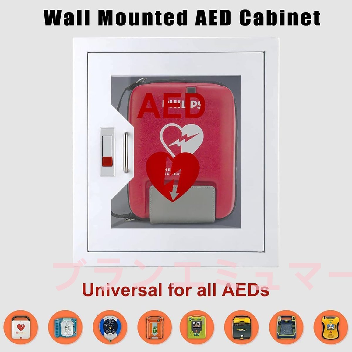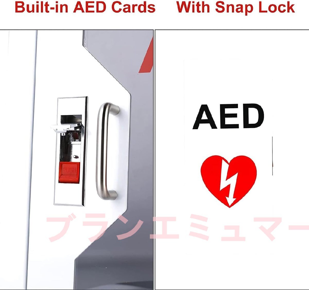 除細動器収納キャビネット、AED除細動器壁掛け収納ボックス、スナップロック付き応急処置除細動器アラームボックス、金属鋼板、ホームオフ