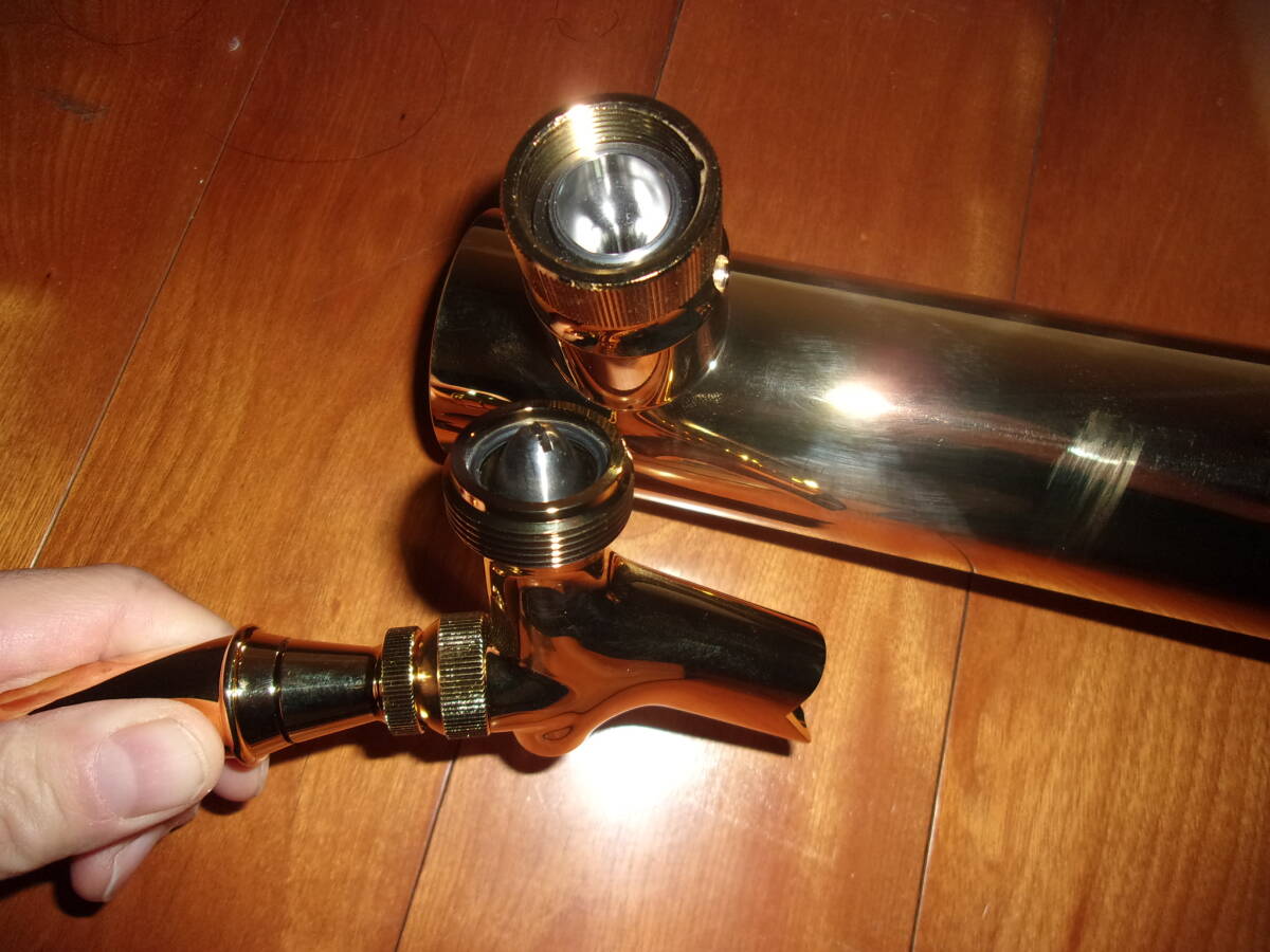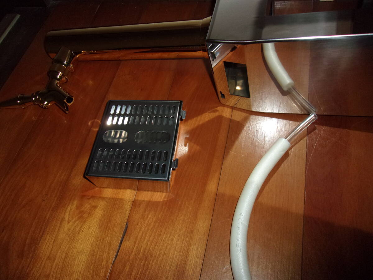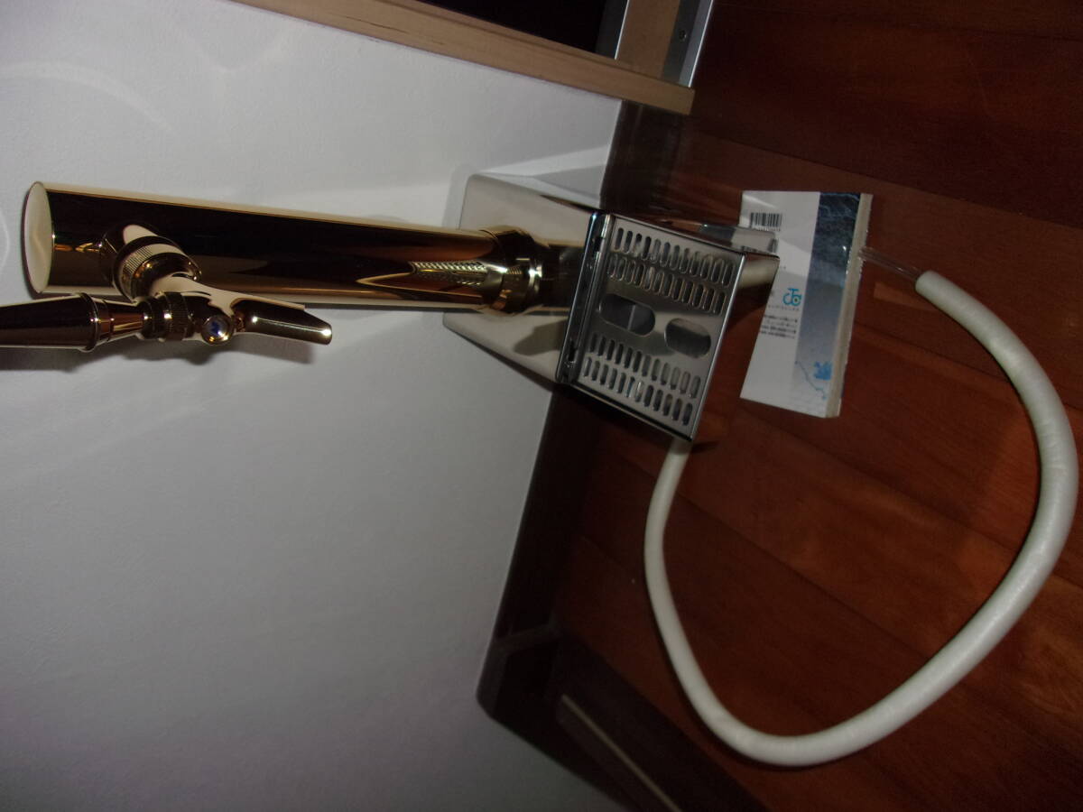 ビールサーバーで使用する新品ドラフトタワーにMG-8なります。サイズは全長54㎝コック含まず ドラフトタワー部分31cmコック含まず。ビールホース ドラフトタワー取り付け台下約95cm です。 12cm幅カウンターまで取り付け可能です 新品なので状態はいいです。スレや小さい傷があります。神経質な方は入札を控えてください。ノンクレーム・ノンリターンでお願いします。 ゴールドダブルコックになります(これがあればクリーミーな泡が簡単に作れます)  コックにも剥げ等はありません。ドラフトタワー・取り付け台・受け皿は新品になります。取り付け台に取り付け時小さい傷を作ってしまいました。気になる方は入札を控えてください。