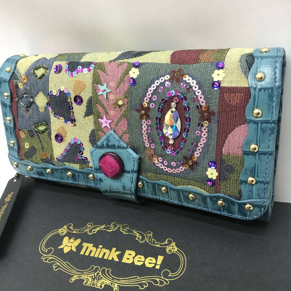 【未使用】新品 シンクビー! Think bee 長財布 L字ファスナー 星柄 スター ハート ブルー系 水色系 ウォレット