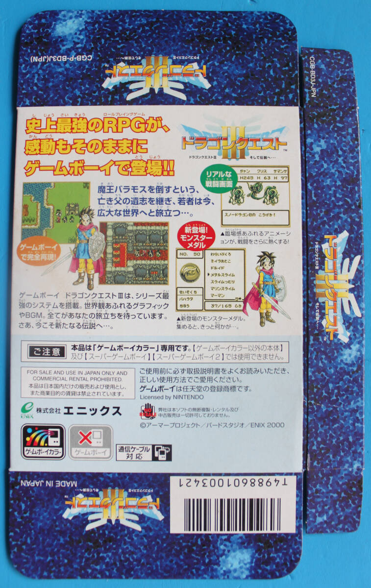 GBCPM003 <貴重> ゲームボーイカラー ドラゴンクエストⅢ 外箱のみ 新品未組立