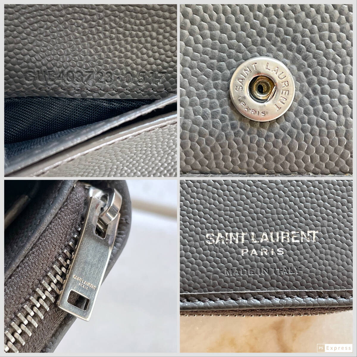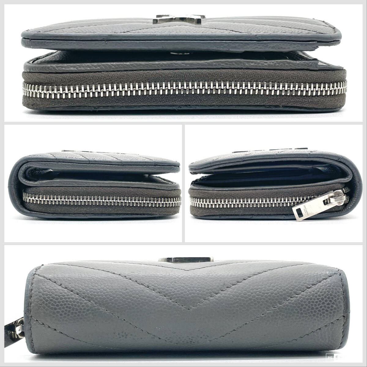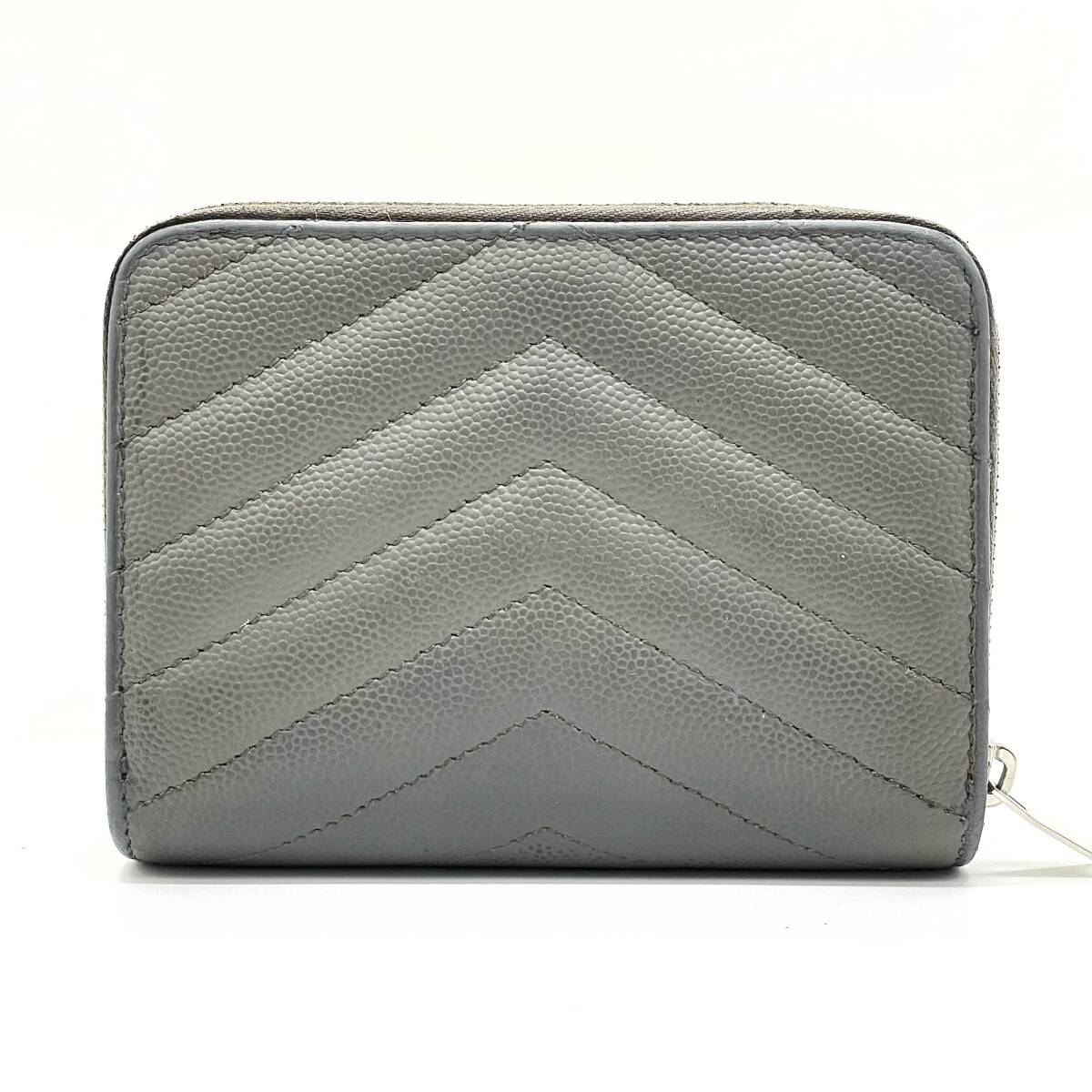 Yves Saint Laurent イブサンローラン / カサンドラ 二つ折り コンパクト財布 / グレー / レザー 本革 / YSL シルバー金具 イタリア製 正規品