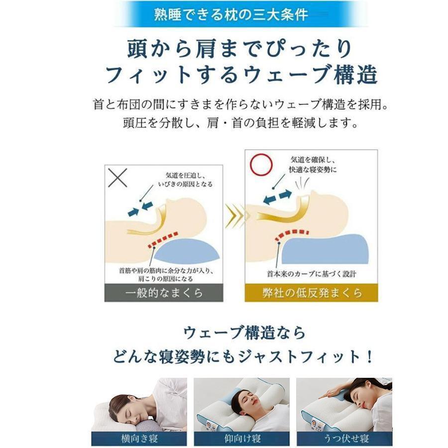 ・こんな方におすすめ。ストレートネックで困っている。・今使っているまくらでは肩がこる、いびきがあり疲れが取れないなどのお悩みの方にも最適な商品です。・高い位置と低い位置をお好みに合わせて利用でき便利です。・通気性にも優れ、洗濯機で簡単にお手入れ可能です。