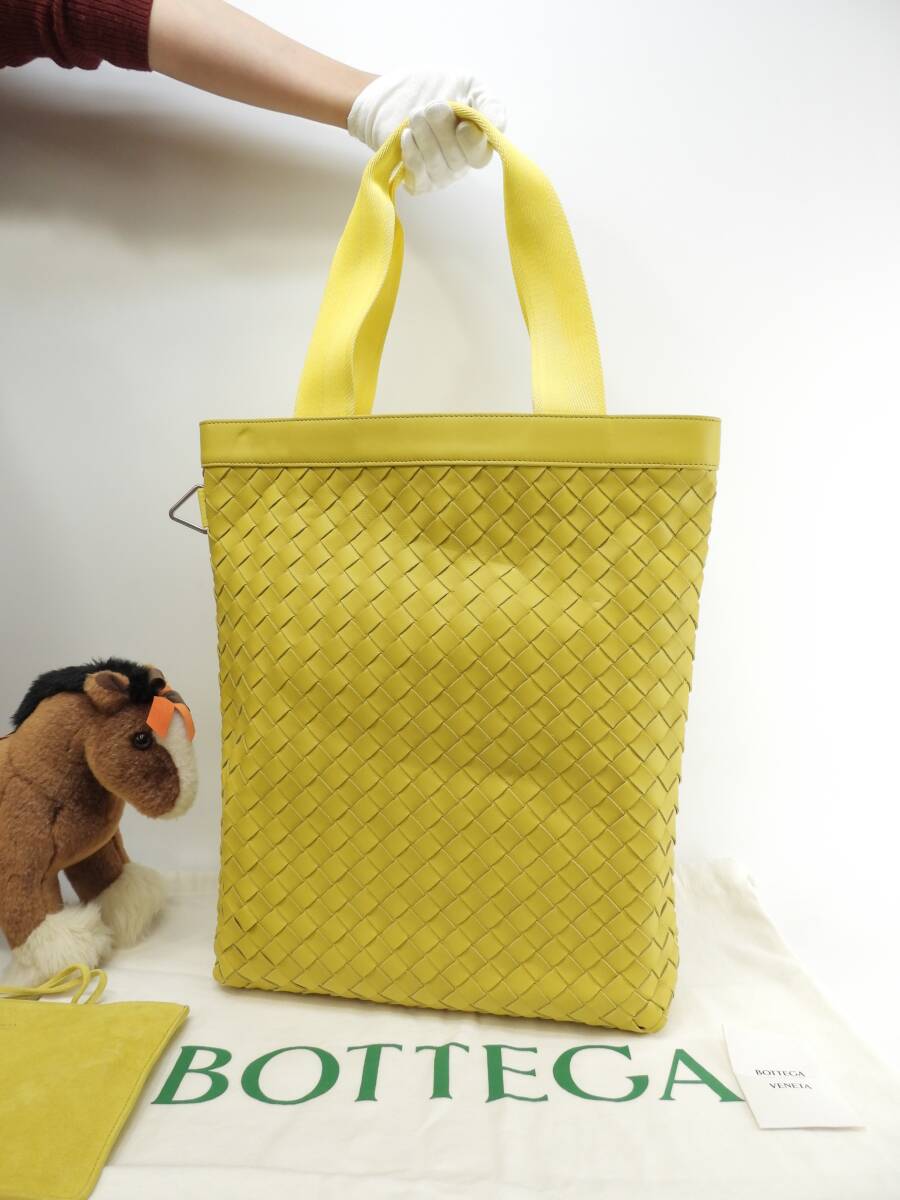 ボッテガヴェネタ メンズトートバッグ大 中イントレチャート レザー黄 ハンドバッグ 新品同様@P01620124Z