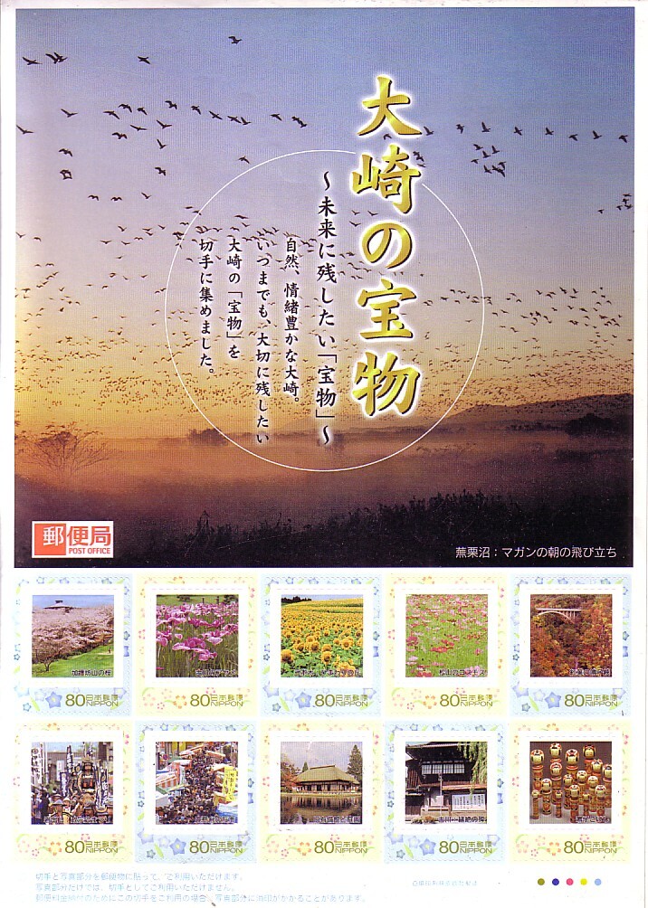 「大崎の宝物~未来に残したい宝物~」のフレーム切手です(80円切手X10枚)。送料は普通140円(普通便 複数同梱発送では180円)になります。