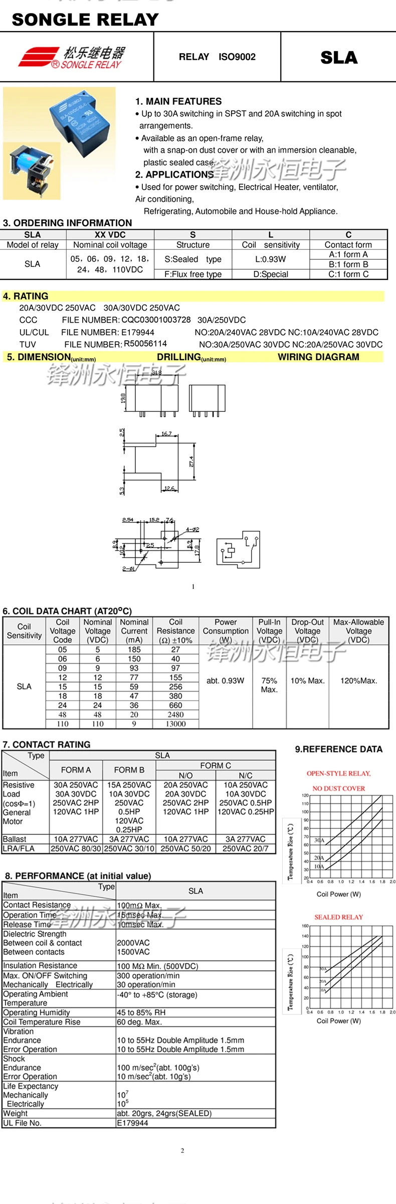 5V30Aリレー SLA-05VDC-SL-C 2個セット