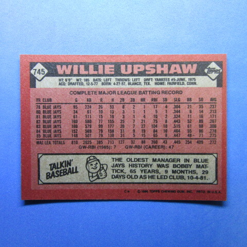 MLB 1986 Topps #745 Willie Upshaw(元福岡ダイエー)