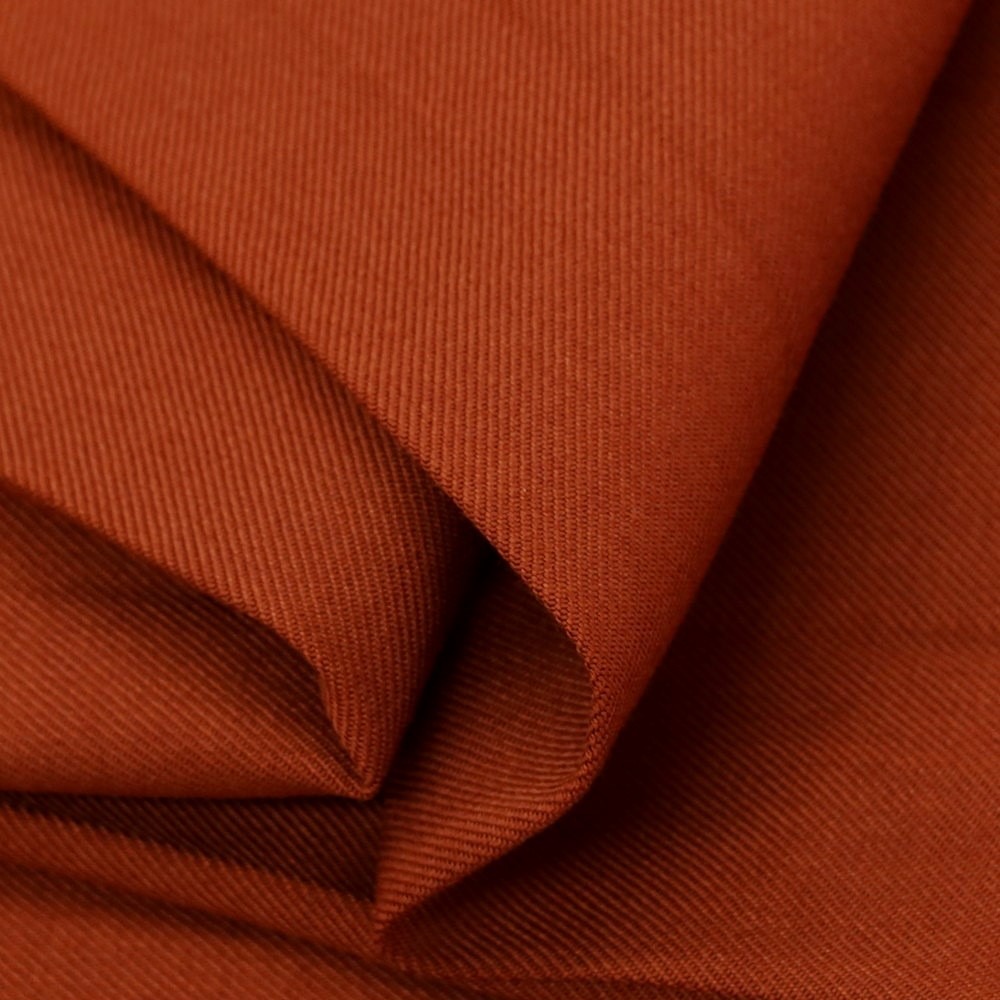 さらりとしたしなやかなポリエステルウール生地を使用した、カジュアルスラックスパンツです。ややワイド目なシルエットとオレンジブラウン系の深みのある色合いが魅力的で、シワ加工によって抜け感のあるデザインに仕上げられています。