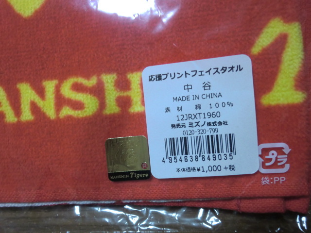 阪神 タイガース 中谷将大 フェイスタオル 未開封品