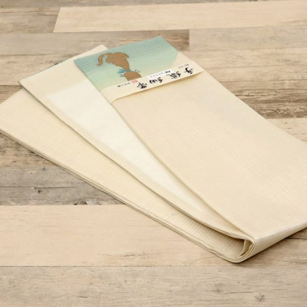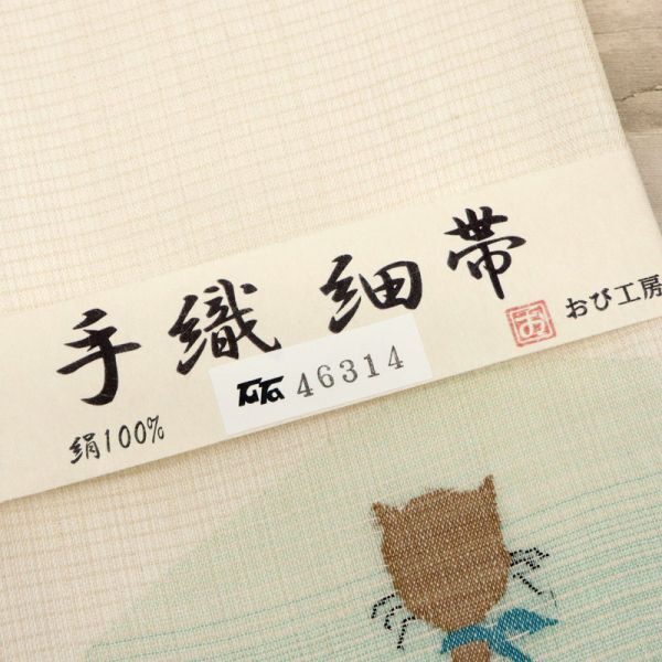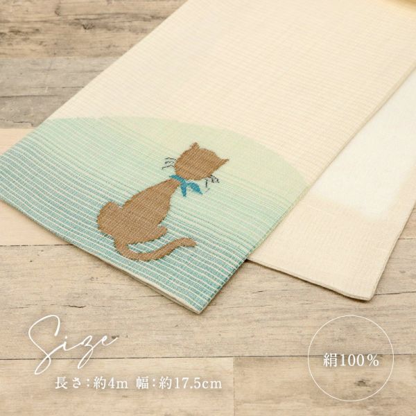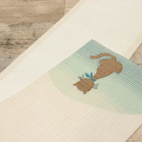 【半幅帯】 新品 『おび工房』 手織細帯 ネコ ホワイト 長さ400cm 帯巾17.5cm 正絹 半巾帯 細帯 和装小物 k24-59