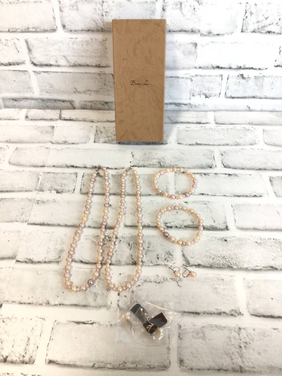 X491 Bonny L ネックレス/ブレスレット/イヤリング 6点セット アクセサリー パール RED ピンク 未使用あり/保管品 箱入