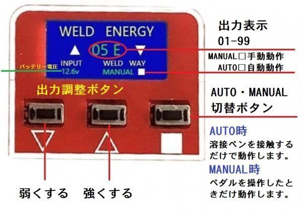 商品説明 | +++ ご覧いただきありがとうございます。 +++ 簡易スポット溶接組立半完成品の強力タイプになります。 動作確認をしての発送になりますので安心して落札できます。 バッテリー接続ケーブルを標準の長さ20cmを40cmにしてありますので、使い勝手が良くなっています。 設定電流も1~99まで設定できますので、0.1~0.25mmのニッケル板の厚みに応じて調整が出来ます。 バッテリーはバイク用の12V-9Aを使用しました。それでも溶接が出来ました。 軽自動車用の12V-30A位のを使用した方が強くなります。 溶接ペンを溶接面に押し付けることで自動で連続動作します。 フットペダルでも動作します。 機能: 1.溶接電源の幅広い選択肢:リチウム電池電源または12Vカーバッテリー。 2.コントローラはシングルチップマイクロコンピュータで制御され、出力パルスは正確で溶接品質を保証します。 3. LCD表示画面で、溶接パラメータを表示できます。 4.溶接ペンと入力ラインは、U字型のコールドプレス端子で接続されているため、分解や交換に便利です。 5.自動タッチ溶接モードを使用し、手動トリガーインターフェイスを維持しながら、用途に応じて選択できます。 6.電源ボードは、過電流容量を増やすために2Gusi銅を使用します。 7、5つの300A MOSチューブ、分解されていないMOSチューブを使用。 8. MOSチューブドライバーは、輸入した専用チップドライバーを採用しています。最速のMOSチューブは20nSでヒットできます。スイッチは高速で、チューブと非三極真空管のプッシュプルドライブの爆発を防ぎます。 9. MOSドライブの設計では、MOSを保護し、チューブの爆発を防ぐために過渡ダイオードが追加されています。 10. 10AWGマルチフィラメントフレキシブルワイヤーを溶接ペンラインと入力ラインに使用して、過電流容量を増やします。 11.コントローラーは主に0.1mm~0.25mmまでのニッケルメッキ鋼帯を溶接するためのものです。 12.エネルギー補償のために25V10000uFの高周波低抵抗コンデンサが電源入力に追加され、溶接の安定性が向上します。 使用説明書: 1:電源接続 コントローラーには、長さ20cmの10AWG入力線が付属しています。一方の端はU字型の端子で圧着されており、もう一方の端は処理されていません。圧着されたU字型端子を制御電源入力端子に接続し、もう一方の端を独自の電源で処理します。負極の接続を間違えないでください。 2:スイッチのオンとオフ 制御盤の下に電源スイッチがあります。を押した後、3秒間待ちます。ブザーが鳴った後、LCDが点灯し、起動が完了します。電源スイッチをもう一度押すとシャットダウンします。 3:画面の説明とパラメータの調整。 4:溶接 溶接ピンを清潔に保ちます。溶接ピンを丸頭に研磨すると、溶接効果を向上させることができます。手動と自動の方法があります。 バッテリーの説明: 実際のテストによると、0.1~0.25mmの厚さのニッケルメッキ鋼帯を溶接するには、120~180Aの動作電流が必要です。バッテリーがこの範囲の電流を出力できない場合、溶接は失敗します。 推奨バッテリー容量: 1:25~40ahの12Vカーバッテリー、優れた性能と小さな内部抵抗が必要 2:4000~6000mAh 45C~60C 3S航空機モデルリチウムバッテリー 3:30~35ah12V容量リチウムバッテリーパック 仕様: 材質:金属 入力ライン長さ:40cm 溶接ペンの長さ:.30cm 色:赤+青+黒 数量:1セット システム電圧:9V-12V 車用のバッテリーが使用できます。 動作電流:120-180A パッケージ内容 メイン回路基板 組立済み × 1枚 溶接ペン × 2本 バッテリー接続ケーブル(改40cm) × 1組 フットスイッチ × 1 お試し用ニッケル板 × 1 バッテリーは付属していませんので落札者様で用意してください。 ***注意事項*** バッテリーに接続時+-の接続を間違えないこと。 溶接ペンのショートはさせないでください。 形状等は写真にて判断してください。 |