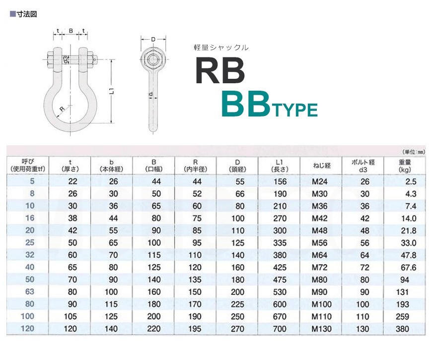 商品名:軽量シャックル RB 10t BBタイプ 国産