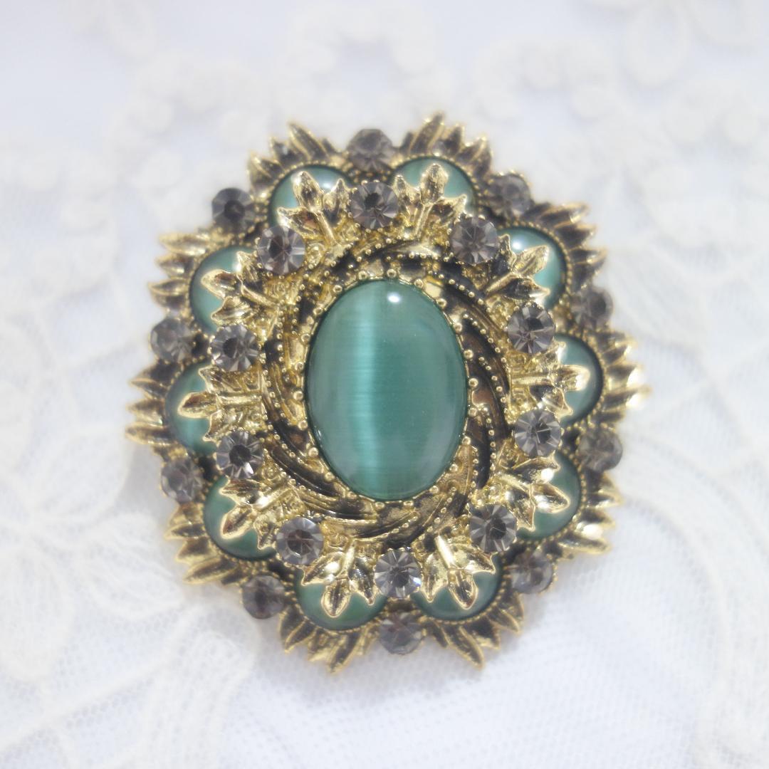 月光石みたいなグリーンのカボションが良く似合っています♪