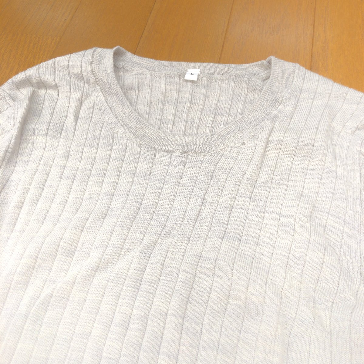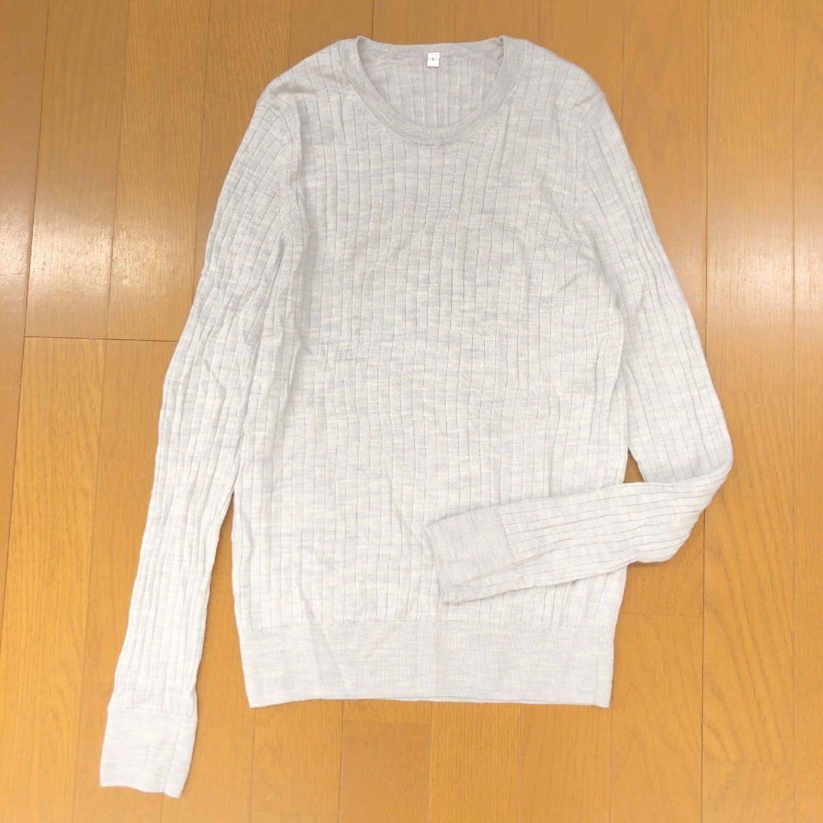 MUJI 無印良品 定価3,990円+税 シルクブレンド ワイドリブ クルーネック ニット セーター L グレー カットソー 長袖 レディース 女性用