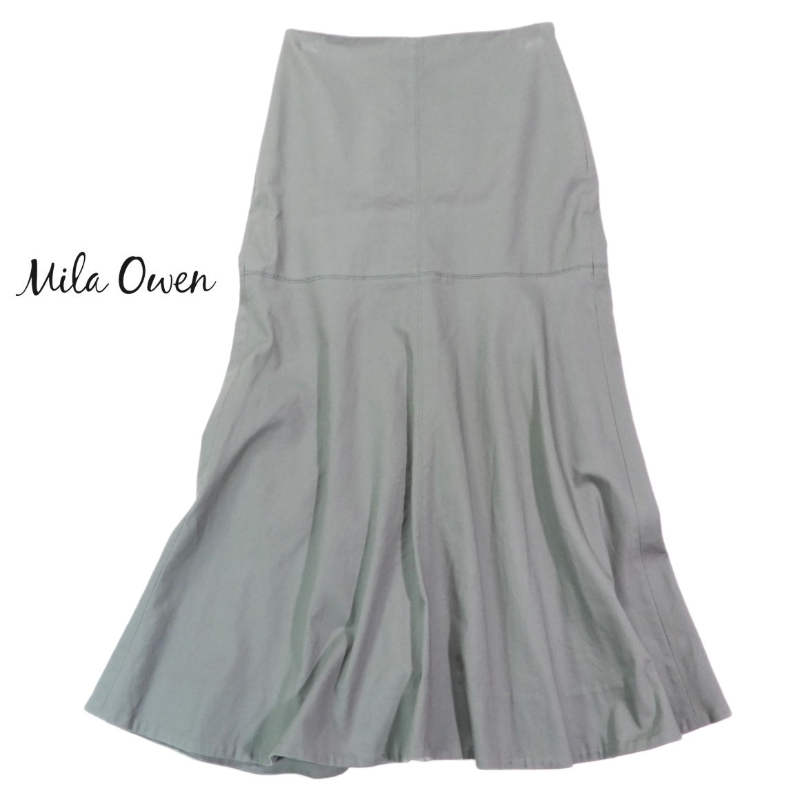 ミラオーウェン スカート サイズ表記:0 お色:くすみグリーン系 素材:綿98 ポリエステル2 裏地 ポリエステル100% 平置き実寸で w32×2 H42×2 着丈80㎝位です。 |
