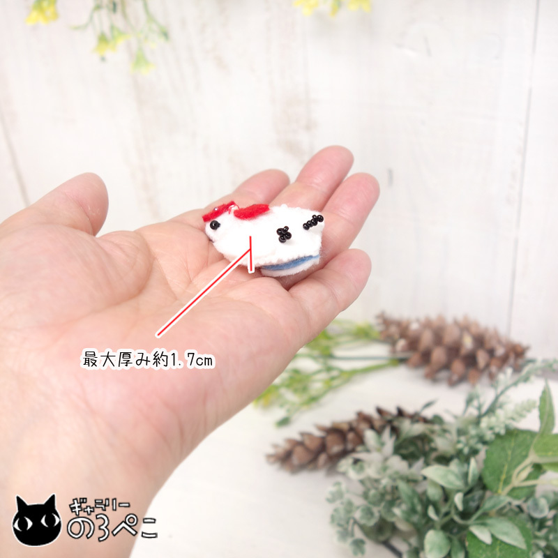 頭に赤い花を飾ったにわとりちゃん。ふっくらしたフォルムがとっても可愛いです。
