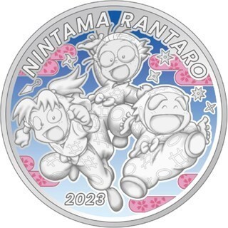 この貨幣セットは、令和5年銘の5百円から1円までの6種類のプルーフ貨幣と銀メダル1枚を特製革ケースに収納し、説明紙には特別描き下ろしイラスト等をデザインしています。銀メダルの表面には、カラー印刷を施した桜のヱ霞文様等を背景に、乱太郎・きり丸・しんべヱをレリーフで表現しています。裏面には、虹色発色加工を施した桜の花びらを背景に、「忍たま30」ロゴをカラー印刷しています。