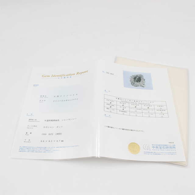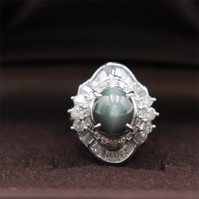 クロソベリル・キャッツアイ指輪 5.33ct FD:1.72ct 13.1g 12号 |