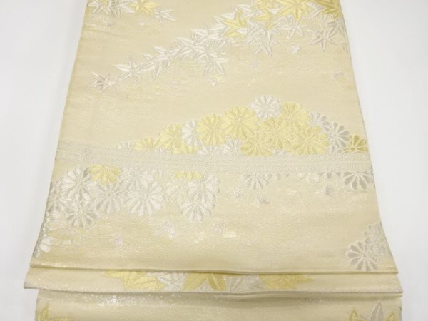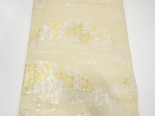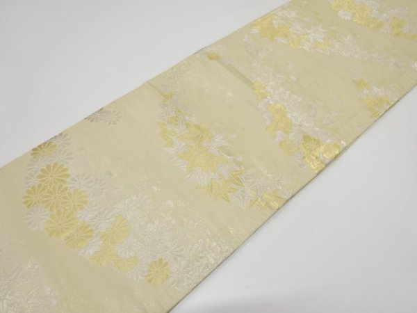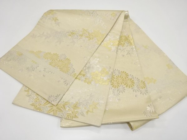 ys7217044; 紅葉に菊・梅模様織り出し丸帯(材料)【アンティーク】【着】