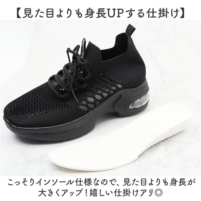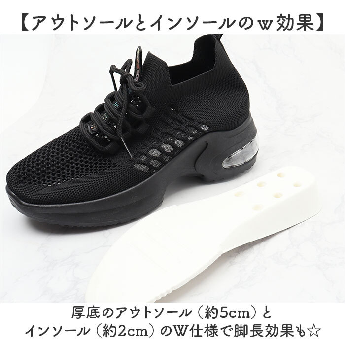 商品説明 | ・・【トレンド感のある足元に☆】 ・ボリュームソール+インヒールでスタイルUP!トレンド感のある足元に☆ ・【見た目よりも身長UPする仕掛け】 ・こっそりインソール仕様なので、見た目よりも身長が大きくアップ!嬉しい仕掛けアリ◎ ・【アウトソールとインソールのw効果】 ・厚底のアウトソール(約5cm)とインソール(約2cm)のW仕様で脚長効果も☆ ・【真夏でも足元はサラリと快適】 ・アッパー生地は、通気性に優れたメッシュと伸縮性抜群のニット素材を使用で夏場でも快適。 ・【トレンド感のある足元に仕上げる】 ・足元にボリュームが出るデザイン。履くだけで今っぽいバランスのコーデになり、トレンド感UP! ・【歩行時の衝撃を優しく吸収】 ・ソールかかと部分に、エアクッションを内蔵。長時間履いても疲れにくいのも魅力的。 ・【幅広いコーデにマッチするデザイン】 ・シンプルデザイン&カラーでスカートにもパンツにもマッチするアイテム。 ・【滑りにくいので雨の日も安心】 ・靴裏には滑りにくいよう加工を施し、歩きやすさに配慮。雨の日でも地面をしっかりグリップ! |
