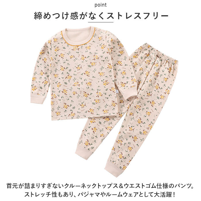 | 商品説明 | ・・着心地バツグン。デイリー使いにぴったりな、キッズ用パジャマセットが新登場。 ・【長袖のトップス&パンツセット】 ・ちょっぴり肌寒い日や季節の変わり目に!お手持ちのパーカーなどを羽織れば、ロングシーズン着用できるのも嬉しいポイント。 ・【優しい肌触り】 ・柔らかく程よい厚みの生地感。コットン素材なので、デリケートな肌に触れても安心。 ・【締めつけ感がなくストレスフリー】 ・首元が詰まりすぎないクルーネックトップス&ウエストゴム仕様のパンツ。ストレッチ性もあり、パジャマやルームウェアとして大活躍! ・【着脱カンタン】 ・ボタンなどがなく、お子さま1人でも着替えがラクチン。袖や裾部分は程よくフィットするリブタイプ。 ・【持ち運びにも便利】 ・折りたたんでもかさばりにくく、旅行などにもおすすめ。 ・【兄弟・姉妹お揃いで♪】 ・ナチュラル可愛いデザイン&4サイズ展開。お揃いコーデもできちゃう☆女の子のデザインは襟元にレースをプラス。 |