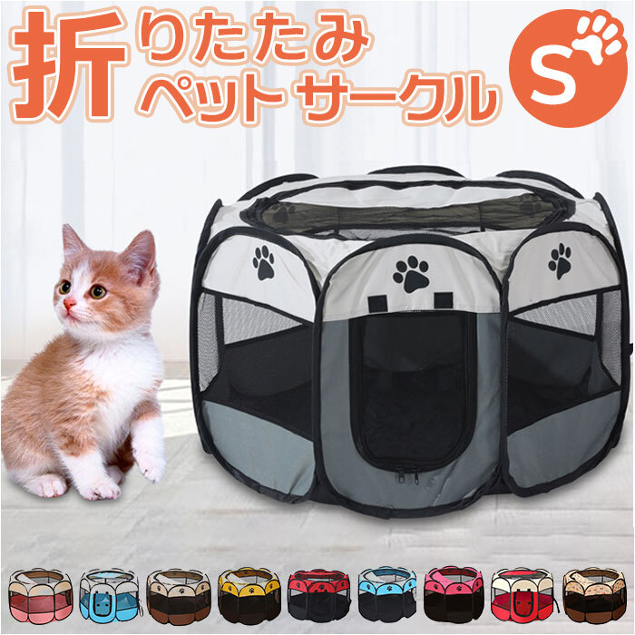 商品説明 | ・・飼い主さんがお留守中もゆったりくつろげる♪パッと広がる「折りたたみ式ペットサークル(Sサイズ)」 ・【パッと広げて、サッと使える】 ・折りたたまれたペットサークルのゴムバンドを外して、パッと広げるだけでサークル型のペットハウスに変身!組み立て不要ですぐに使えるのが嬉しいポイント。 ・【ゆったり広々スペース】 ・ペットサークルの中は、お昼寝用のクッションやペット用トイレを置いても余裕のあるゆったり広々設計。超小型犬やネコちゃんにちょうどよいSサイズ。 ・【通気性の高い安心構造】 ・ハウスの天井・側面全てが丈夫で通気性抜群のメッシュ素材!ペットの様子がひと目で確認でき、ニオイもこもらないから快適。 ・【ペットの出入りがスムーズ】 ・ペットサークル側面の出入り口は、ファスナーで開閉するフラップタイプ。クルクルと丸めて面ファスナーで留めておけば、いつでも出入りが自由に。 ・【ぶつかっても安心】 ・柔らかいポリエステル素材とメッシュ生地、弾力性のあるワイヤーフレームを使っているから元気なペットがぶつかっても安心。 ・【飛び出し防止メッシュ屋根付き】 ・天井部もファスナー開閉するメッシュ屋根になっているので、活発なワンちゃんやネコちゃんが飛び出す心配のない安心仕様。超小型犬用ハウスとして使うときは、屋根を取り外して使ってもOK! ・【スリム&コンパクト】 ・パタパタと折りたたんでゴムバンドで留めれば、ちょっとした隙間に収納できるコンパクトサイズに。 ・【軽量で持ち運びに便利】 ・ペット同伴での旅行や、アウトドアでペットのプレイスペースを確保したいときにサッと持ち出せる、本体重量わずか725g程度の軽量設計。 ・【ペットのくつろぎ空間に】 ・急な来客で落ち着かないペットのくつろぎ空間として。妊娠中や病気療養中のペットの保護ルームとしても活躍! |