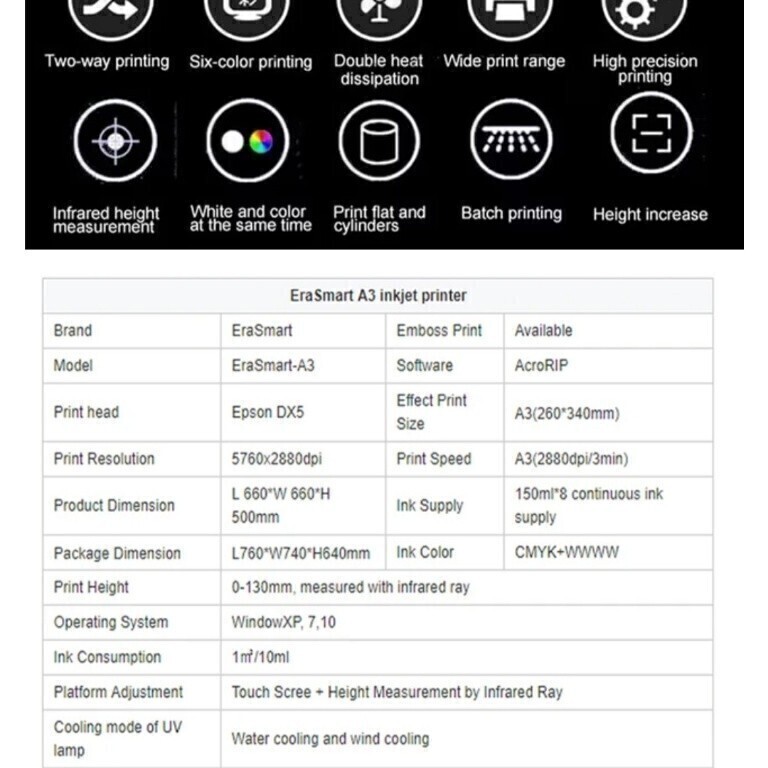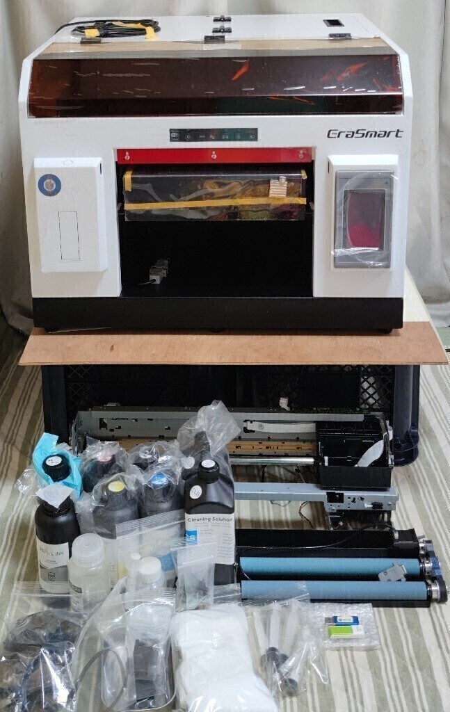 使用少 高画質 A3 8色 自動 UVプリンター 付属品多数 RIPソフト 新品インク部品 EraSmart DTFプリンタ フラットベッド 引取