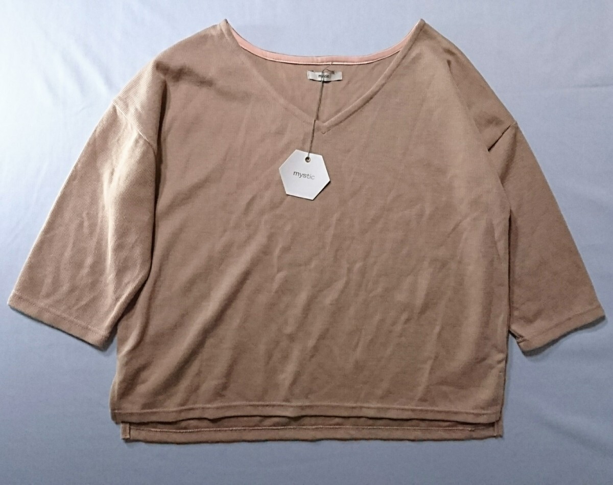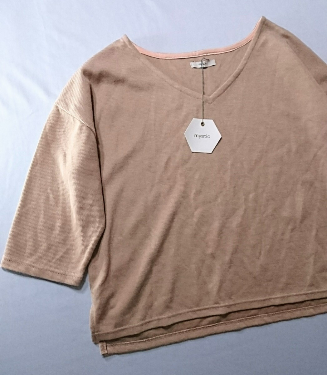 #ミスティック #リブ #カットソー #トップス #くすみ #ピンク #ベージュ #ピンクベージュ #タグ #新品 #未使用 #美品 #vネック #オーバー #シルエット #5分袖 #袖 #半袖 #カバー #体型カバー #人気 #シャツ #プルオーバー #tシャツ #春 #夏 #秋