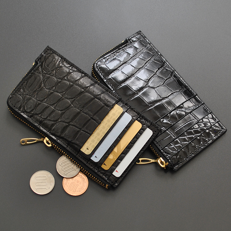 日本製  クロコダイル 鰐革 極薄財布 小銭入れ カード入れ 男女兼用 ファスナー式 スリム
