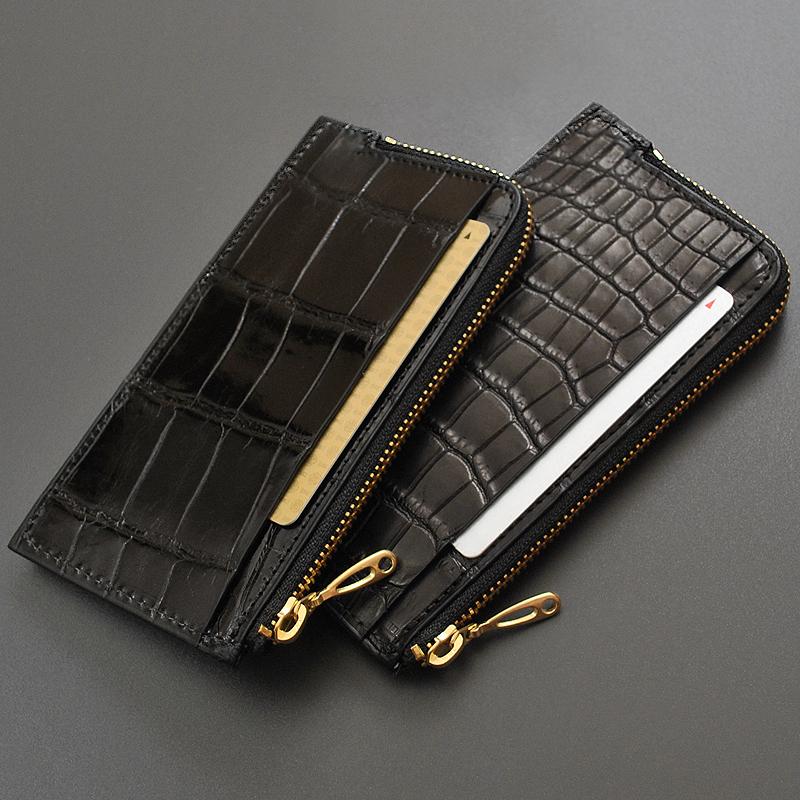 高級なクロコダイル革を贅沢に使用したファスナースリムウォレットです。