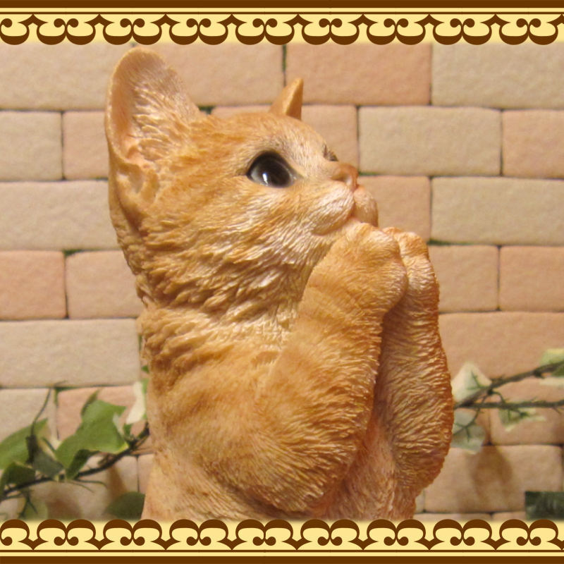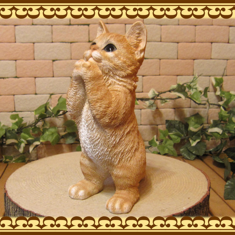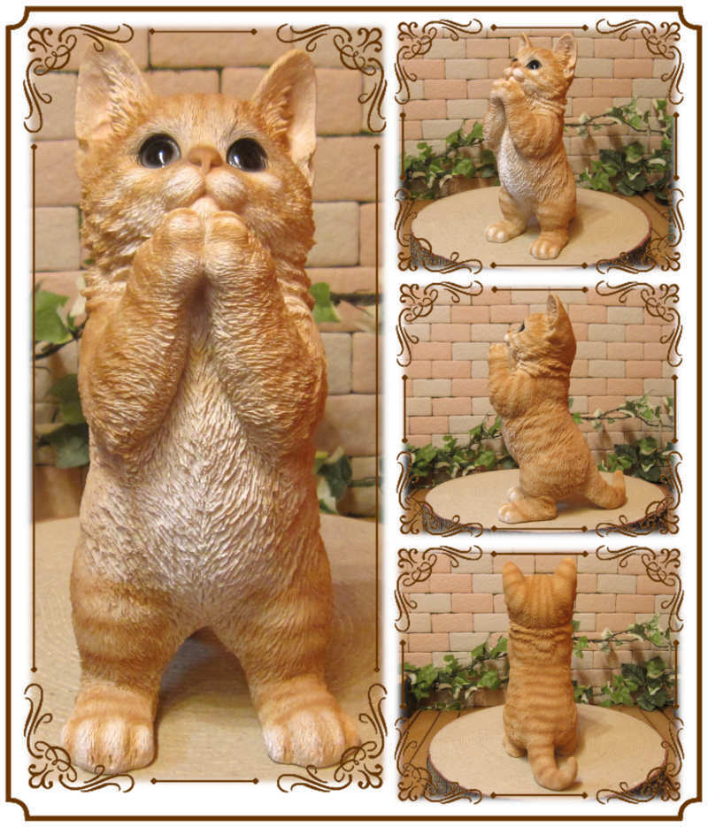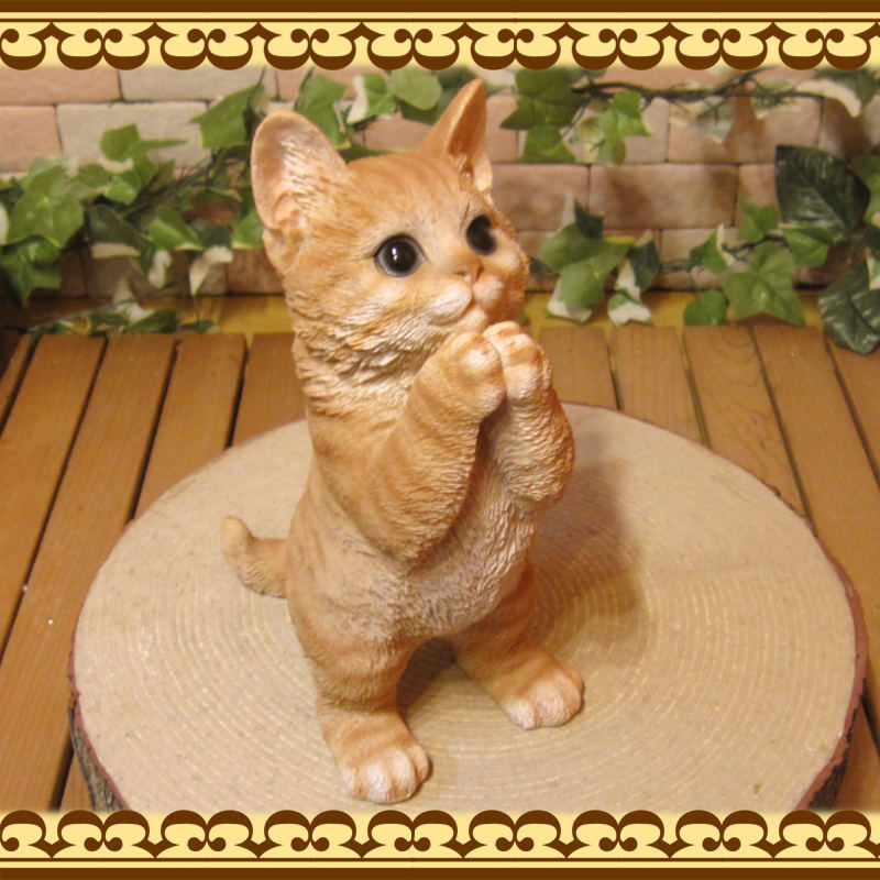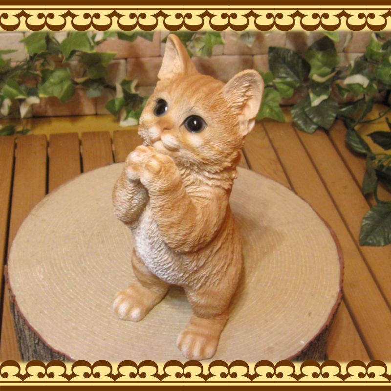 置物 動物 可愛い 猫の置物 リアル お願いキャット 1 チャトラ ネコ フィギュア 子ねこ オブジェ ガーデニング