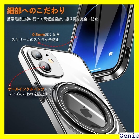 iPhone 11 用 ケース リング付き クリア磁気ケース 耐衝撃 Magnetic 対応 レンズフィルム 良好な光透過率 スタンド機能 角度調整可能 透明 TPU 指紋防止 落下防止 防塵 薄型 軽量 一体型 変形防止 全面保護カバー アイフォン用 ケース 黒 W-DDCX-09-07 75