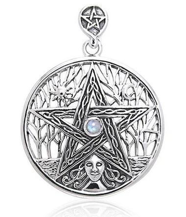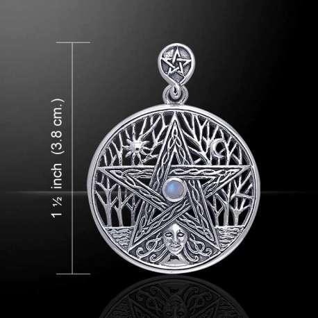 Silver Tree of Life Pentagram Pentacle Pendant Genuine Rainbow Moonstone TPD120 Peter Stone