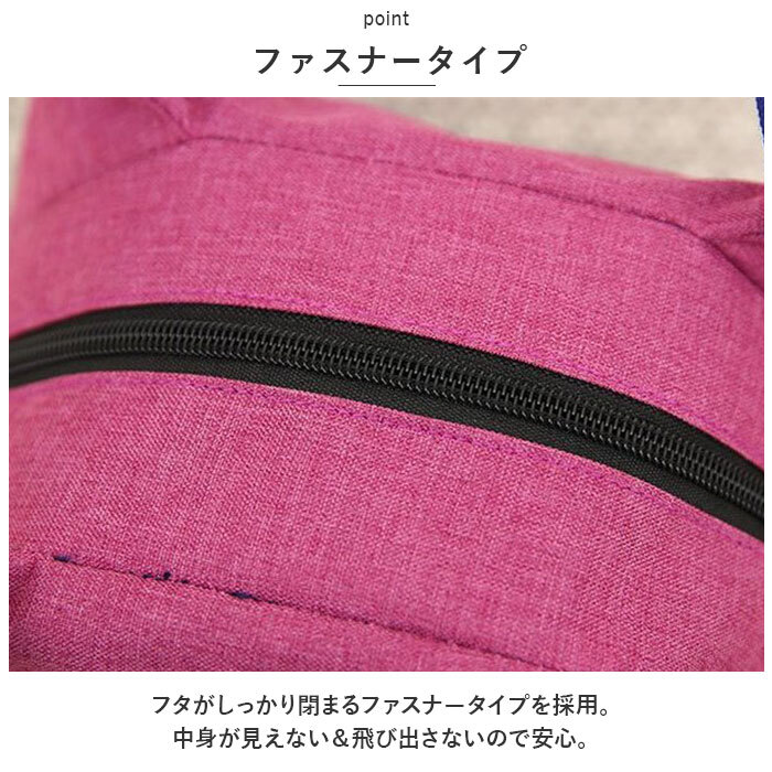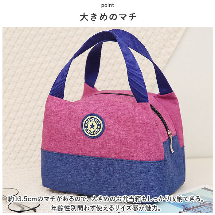 | 商品説明 | ・・大きめのマチでしっかり収納。家族で使えるランチバッグが登場♪ ・【大きめのマチ】 ・約13.5cmのマチがあるので、大きめのお弁当箱もしっかり収納できる。年齢性別問わず使えるサイズ感が魅力。 ・【ファスナータイプ】 ・フタがしっかり閉まるファスナータイプを採用。中身が見えない&飛び出さないので安心。 ・【ランチバッグとして】 ・持ち手付きなので、お弁当箱はもちろん、スマホやタオル、歯ブラシなどランチタイムに使う物を入れてランチバッグとしても使用するのもGOOD♪ ・【外ポケット】 ・外側にはファスナー付きポケットがついているので、ミニウォレットや鍵などの貴重品を分けて収納できる。ちょっとコンビニへ…の時にも便利! ・【ミニバッグとして】 ・お弁当に限らず、ミニバッグとしての使用もオススメ。しっかり収納力で、ちょっとしたお出かけにちょうど良いアイテム。 ・【お手入れ簡単】 ・内側の生地はポリエステルを使用。汚れたらサッと拭き取りができる。お手入れが簡単なのも嬉しいポイント。 ・【選べるカラー】 ・カラーバリエーションが豊富。家族やカップルで色違いで使ったり、お友達とお揃いにするのもオススメ☆ |