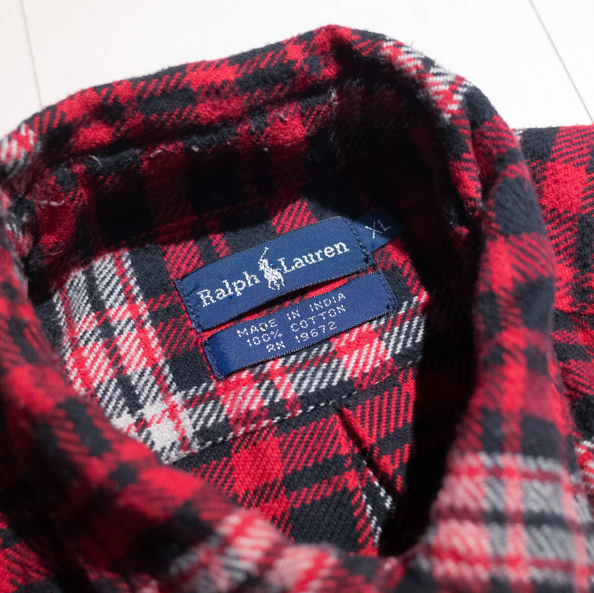 XL / 90s POLO RALPH LAUREN ポロ ラルフローレン フランネル BD シャツ 厚手 赤 チェック柄 小襟 アメカジ 古着 アウトドア メンズ