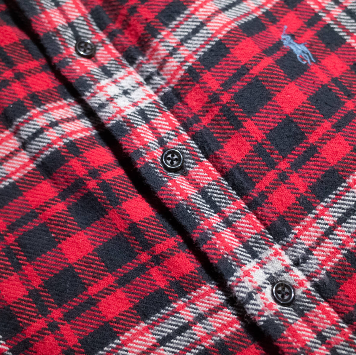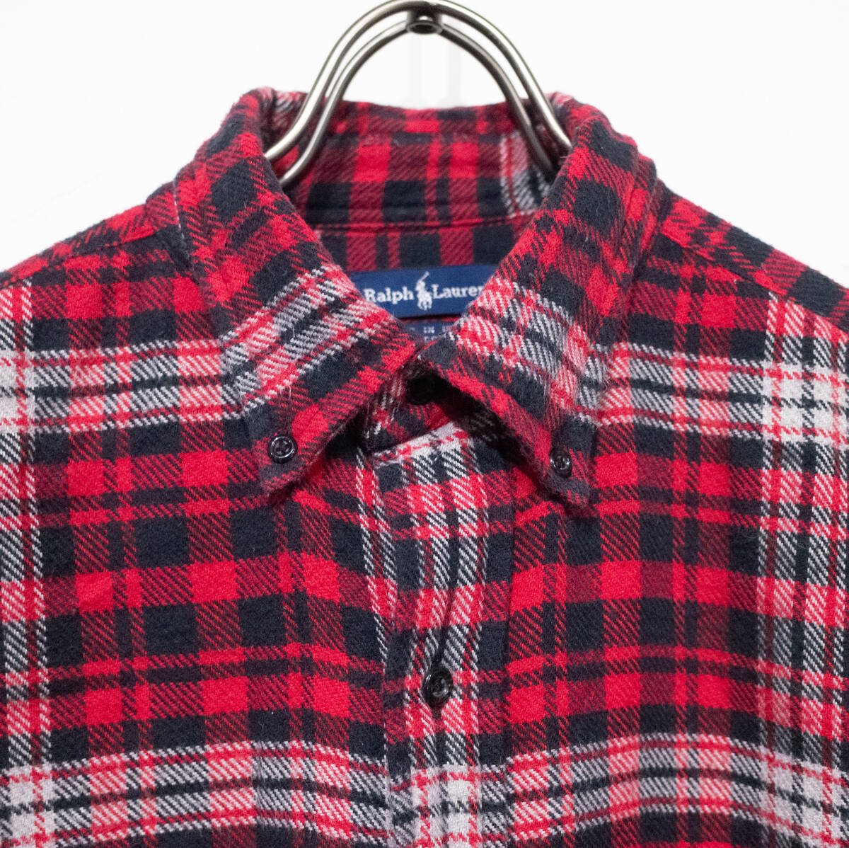 【商品】 90s POLO RALPH LAUREN ポロ ラルフローレン フランネルシャツ 厚手 赤 チェック柄 小襟 アメカジ 古着 アウトドア メンズ