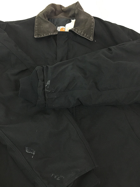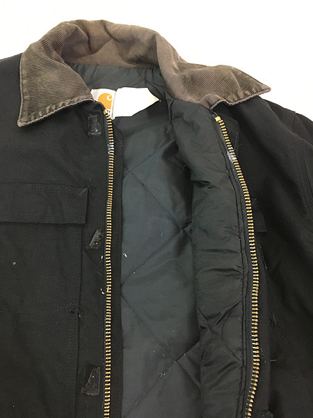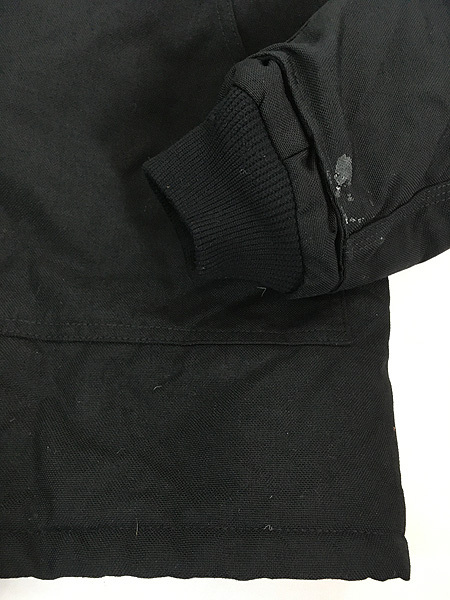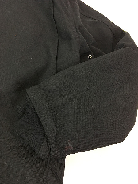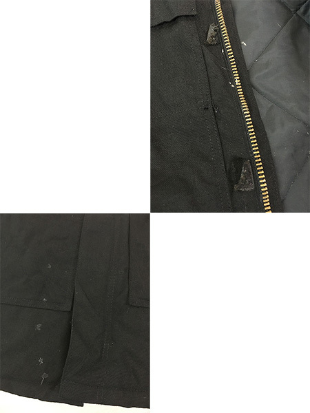 襟コーデュロイ、フロントはジップとベルクロの二重構造、ウエスト内側にドローコード、裏地は中綿入り黒のナイロンキルティング、袖内側リブ付きで防寒性も期待できます。