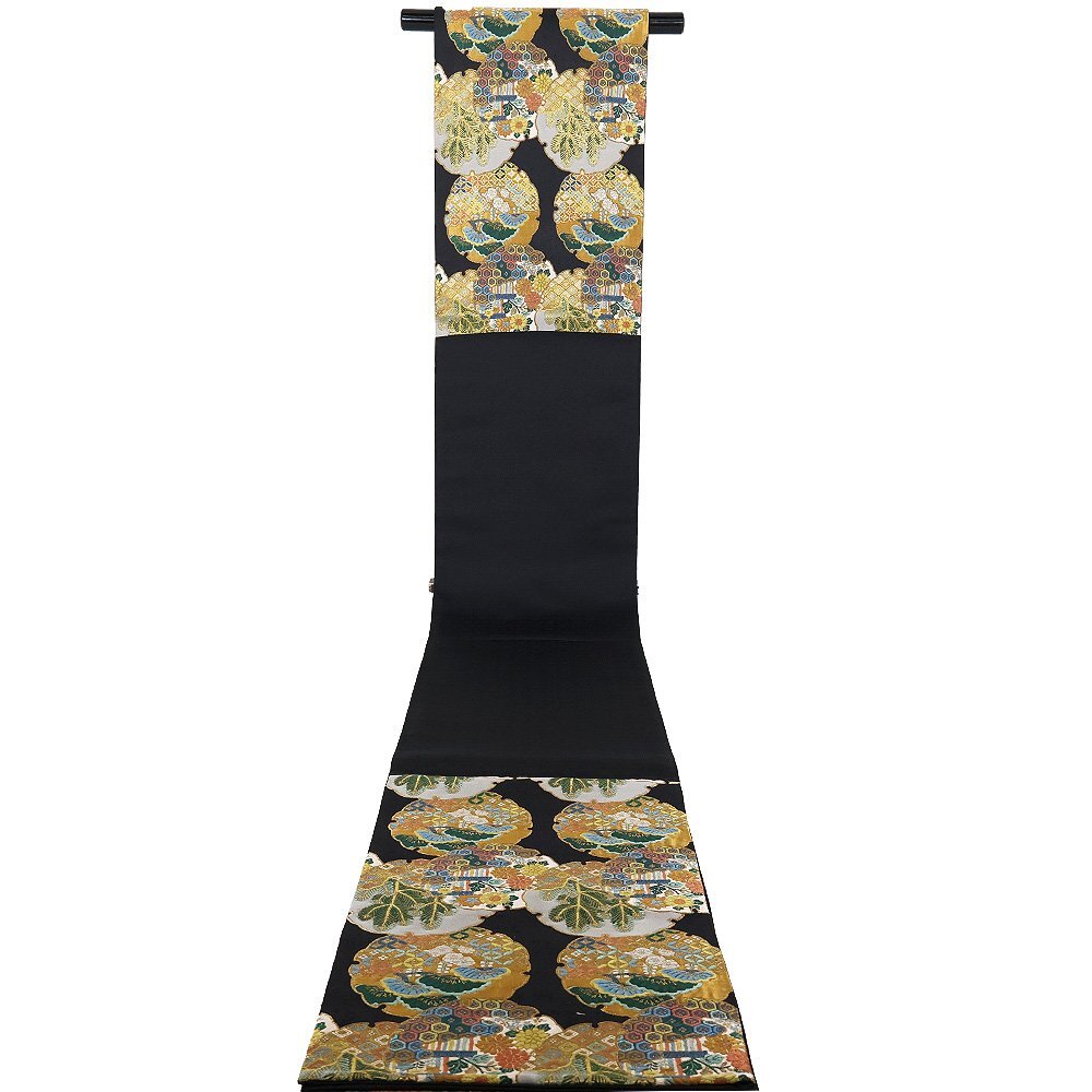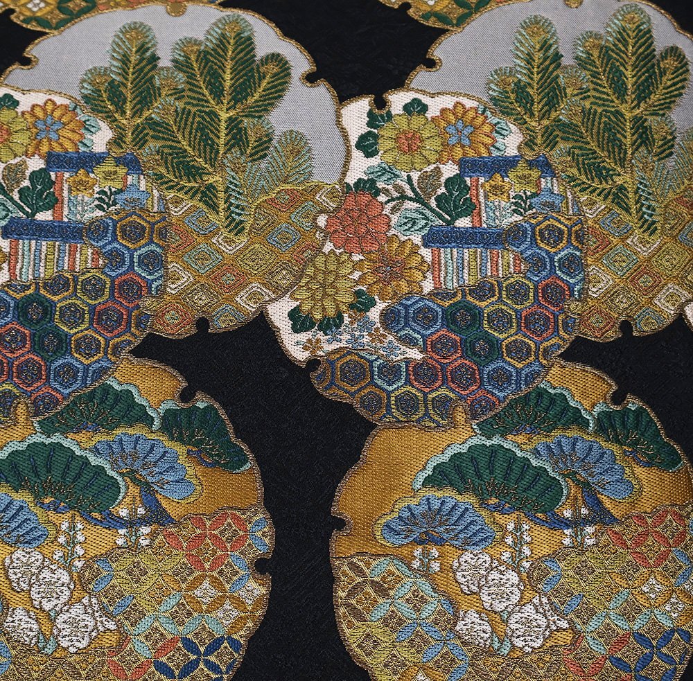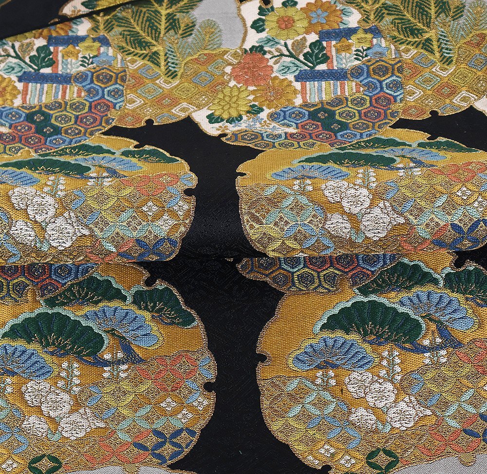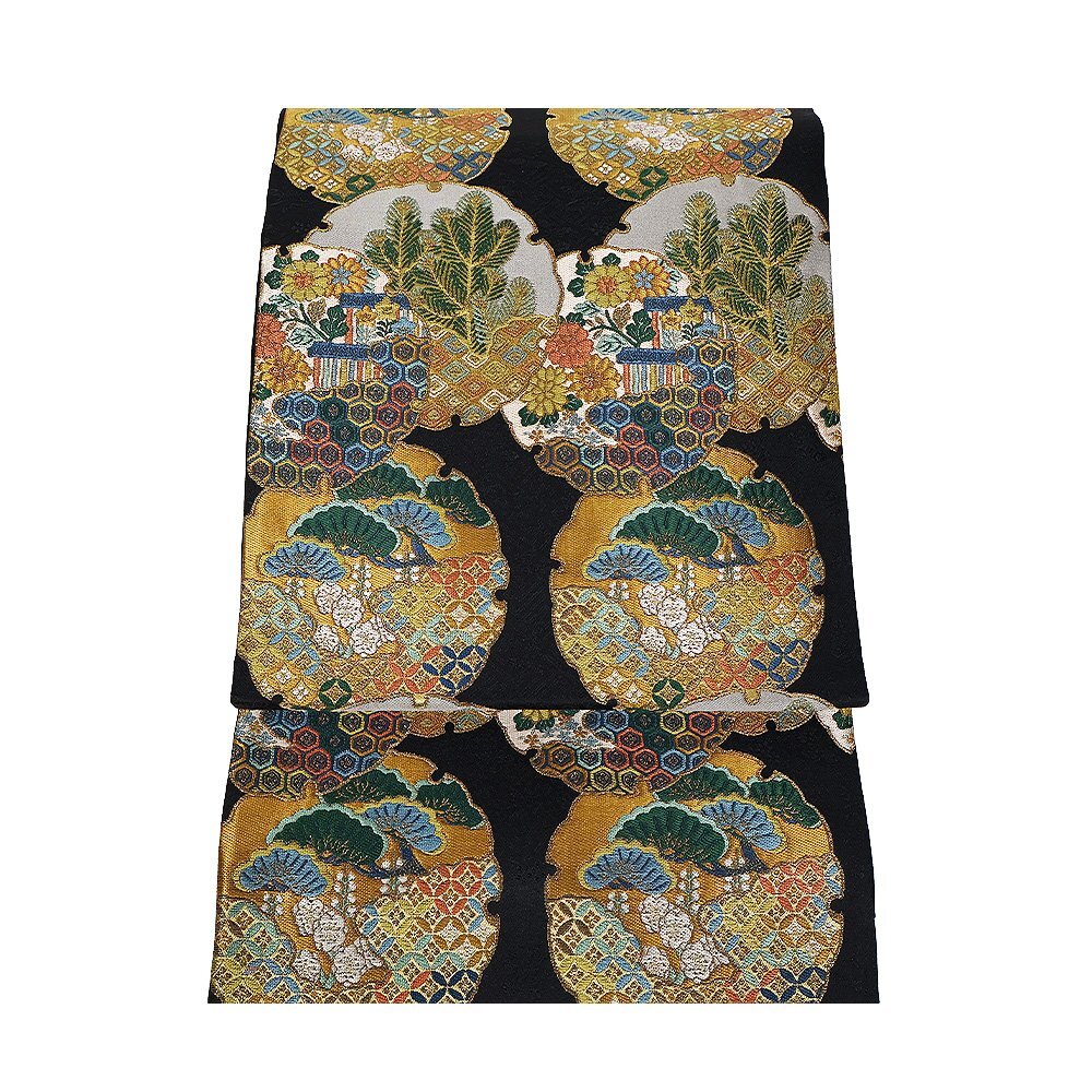 | 西陣織袋帯 黒地 縫い取り・松竹梅・亀甲文・七宝文・雪輪文 未使用品 仕立て上がり |
