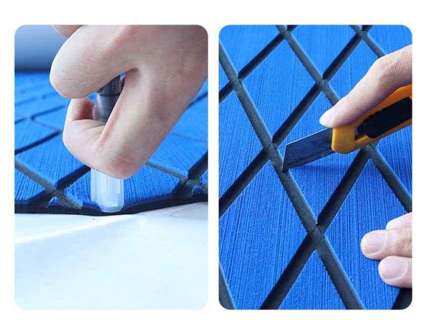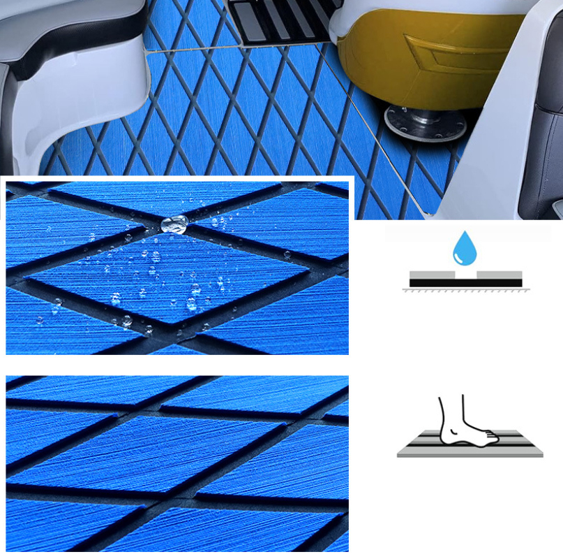ブルー&ブラックライン マリンボート 船デッキマット evaデッキマット ヨットマット フローリングマット フロアマット 2400*450mm
