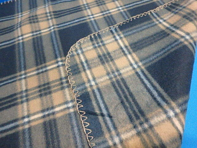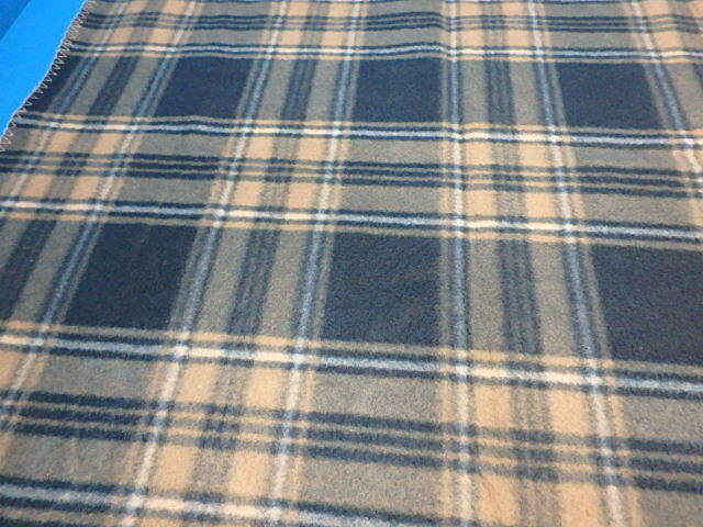 n411y ひざ掛け ブランケット チェック柄 ベージュ/ダークグレー系 約78×59㎝程 中古 (24-1011-2)