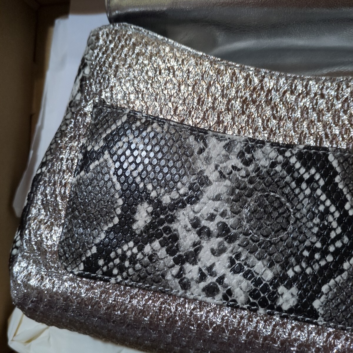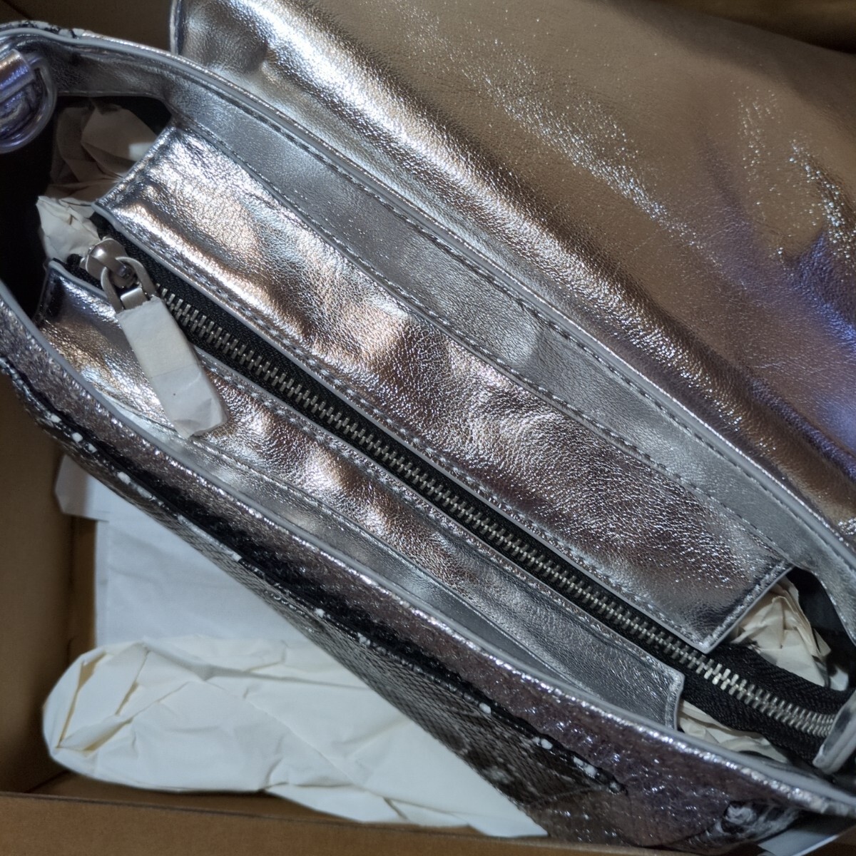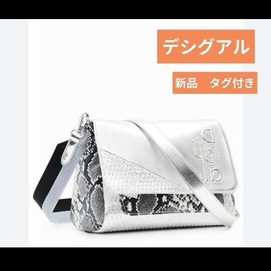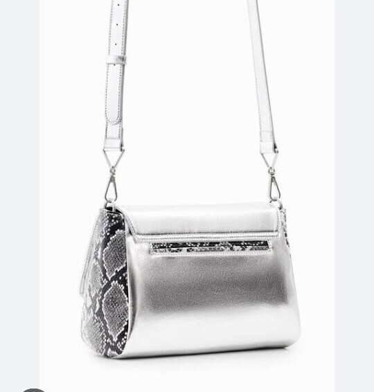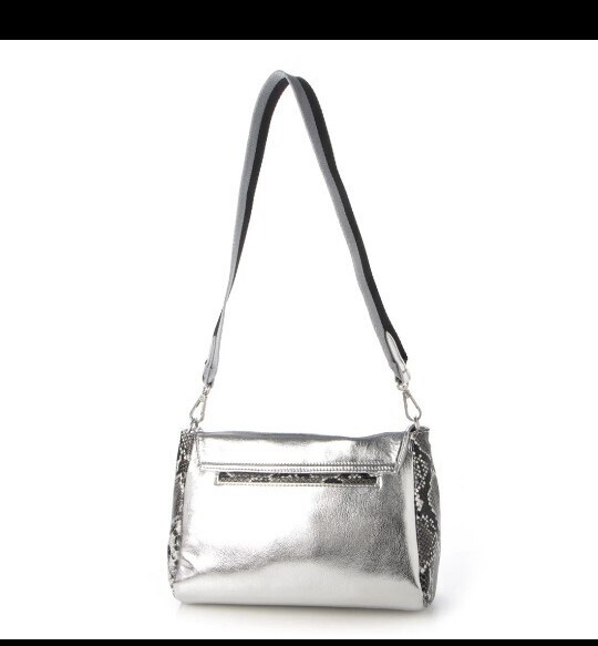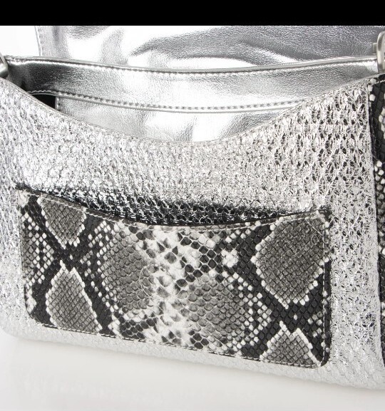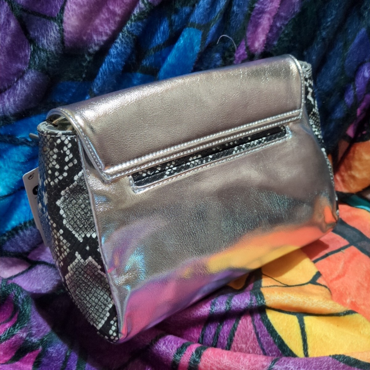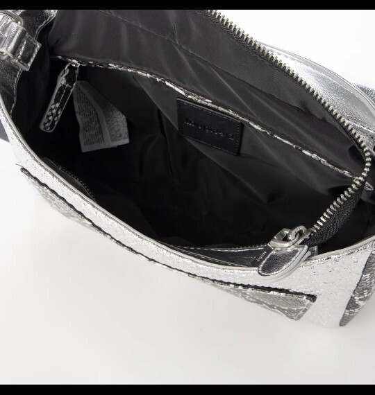 メタリックパッチワークデザインのミドルクロスボディバッグ。