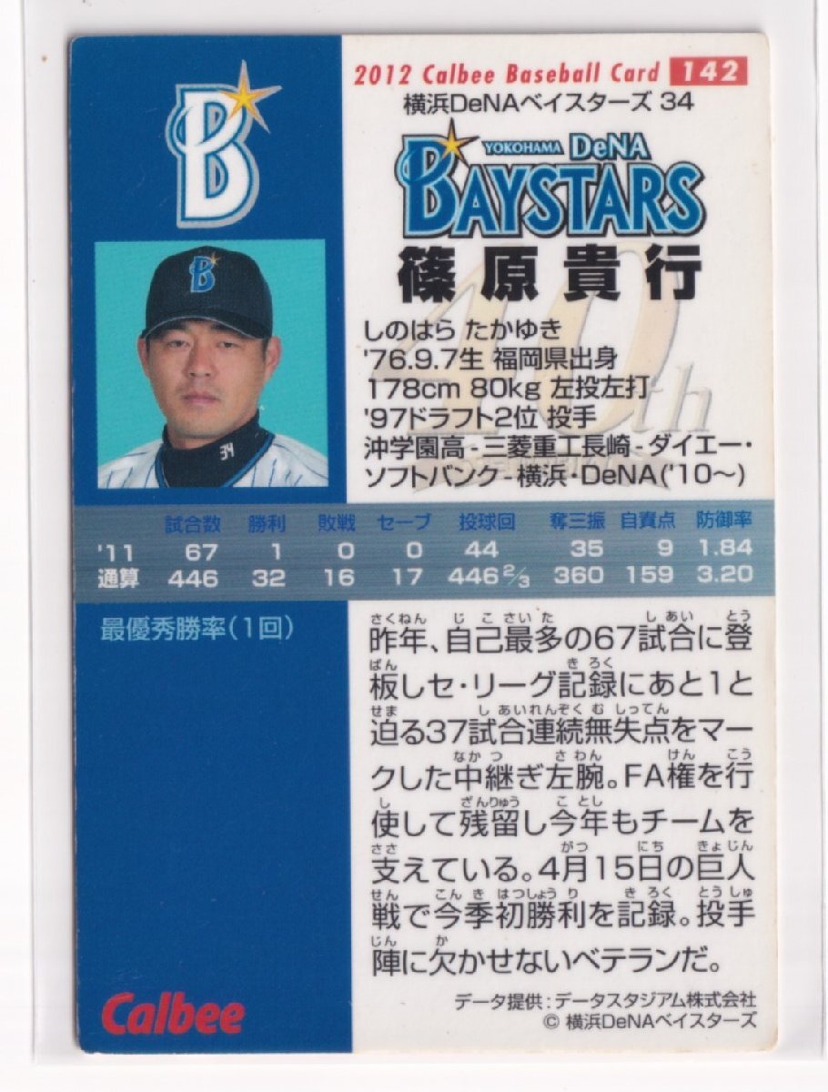 2012プロ野球チップス第2弾 142 篠原貴行(DeNA)