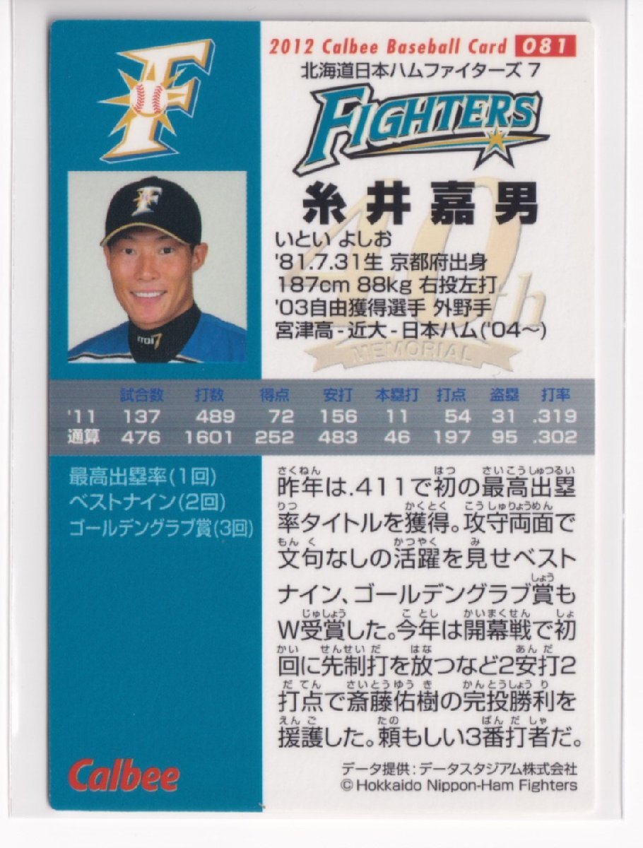 2012プロ野球チップス第2弾 81 糸井嘉男(日本ハム)