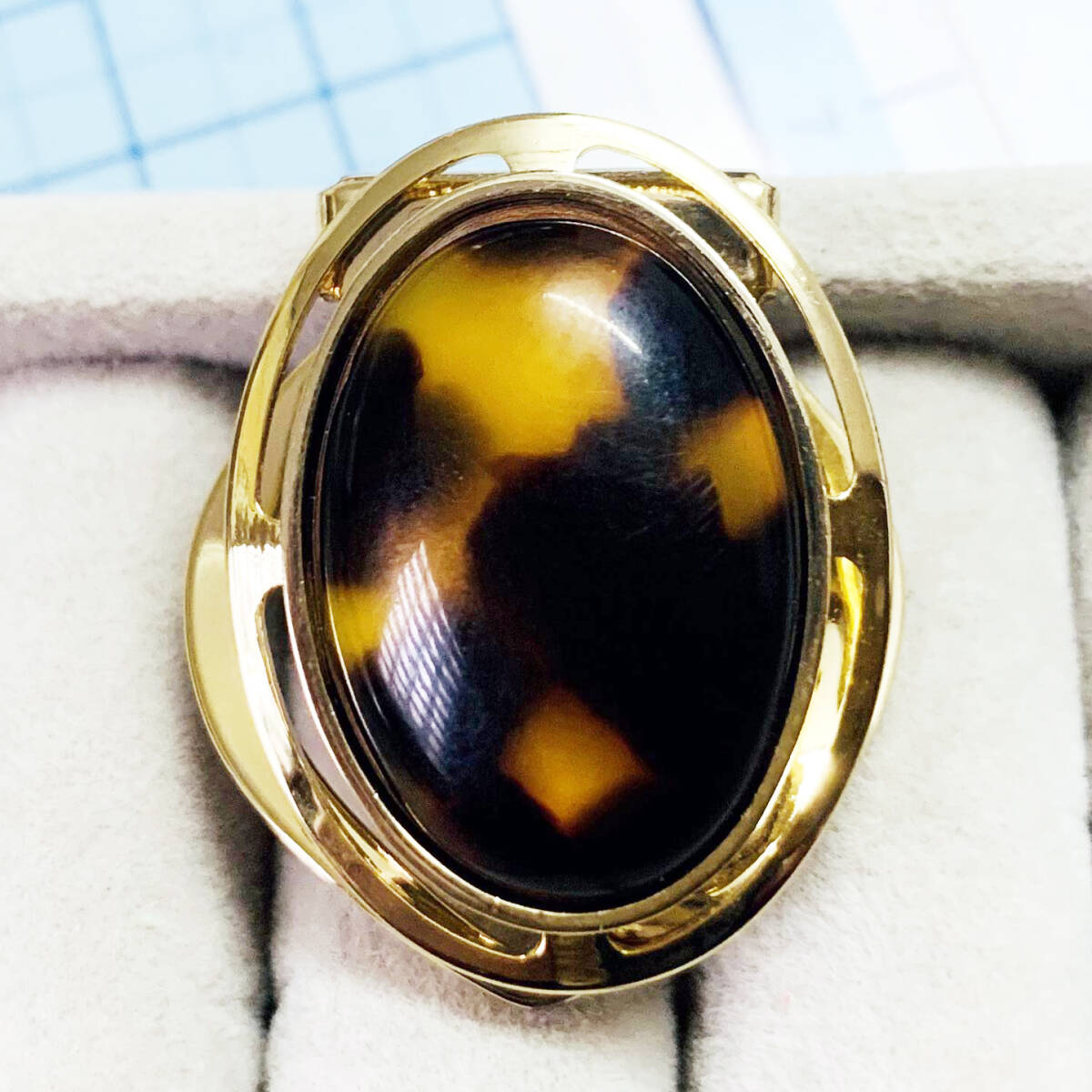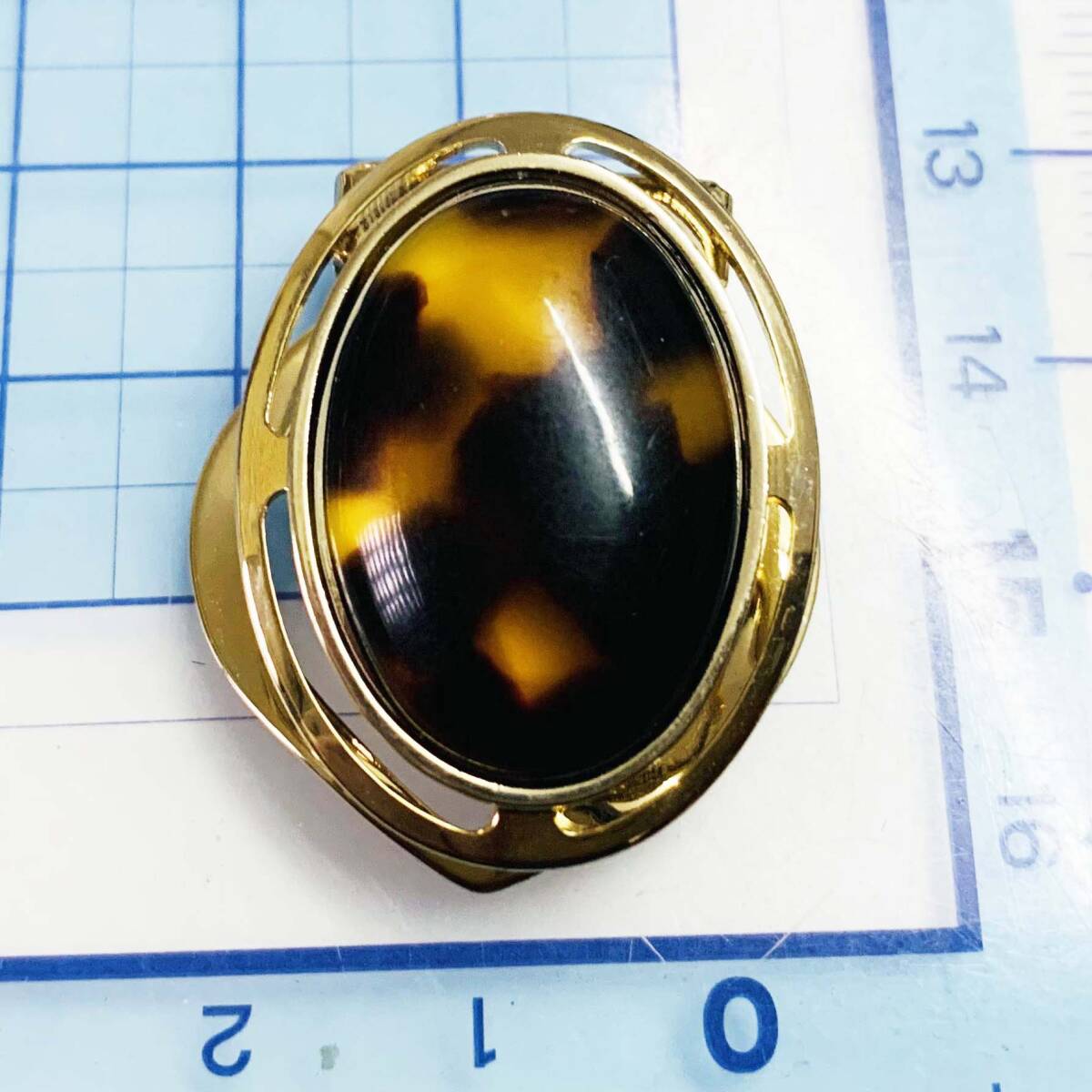 美品 天然鼈甲 ゴールド スカーフ留め クリップブローチ No.S469