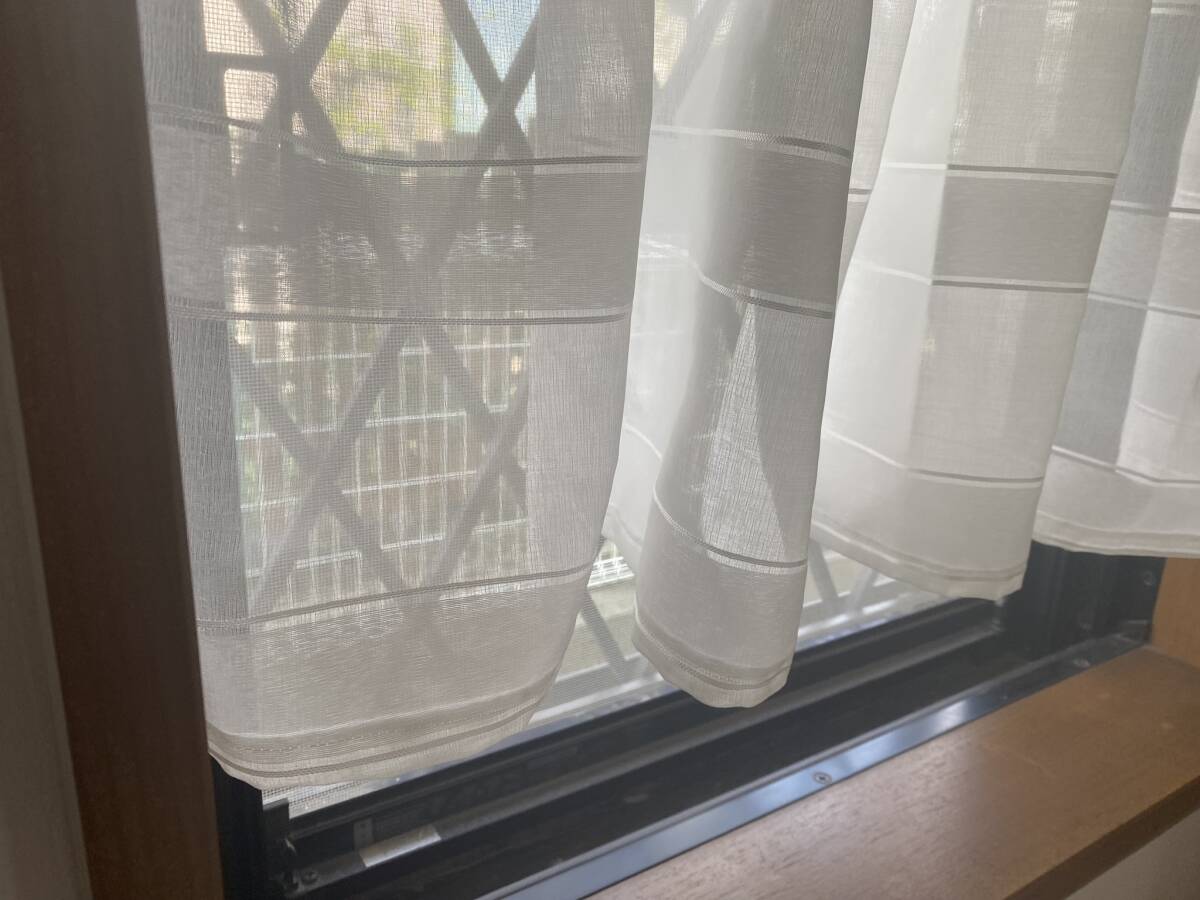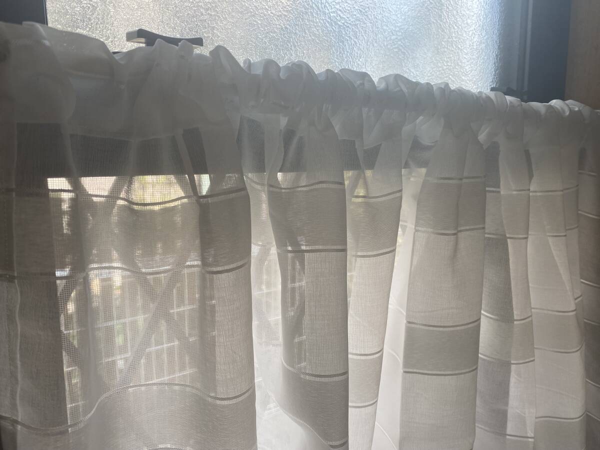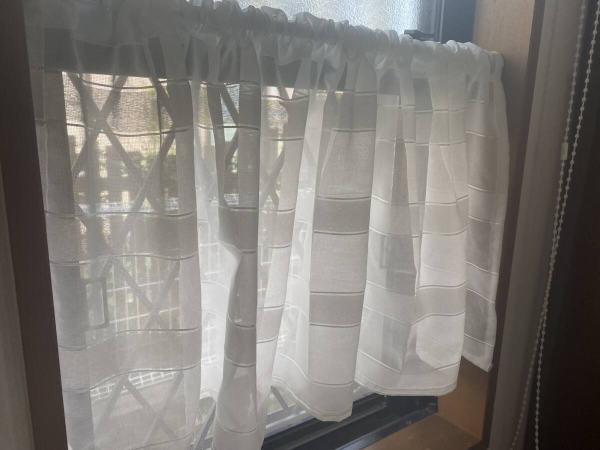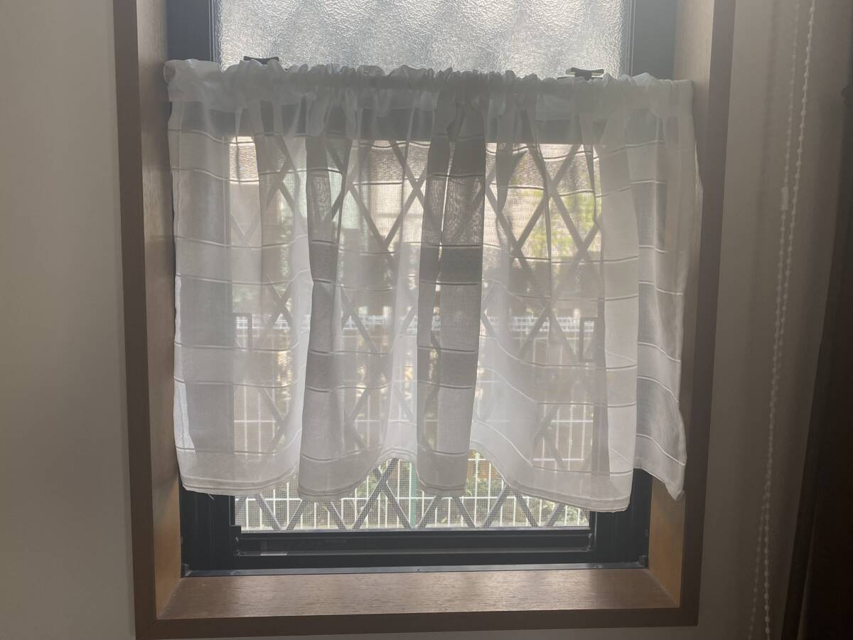 写真は、我が家のキッチンの小窓です。生地自体に貼りがあるので、ボリュームが出てとてもかわいいです。