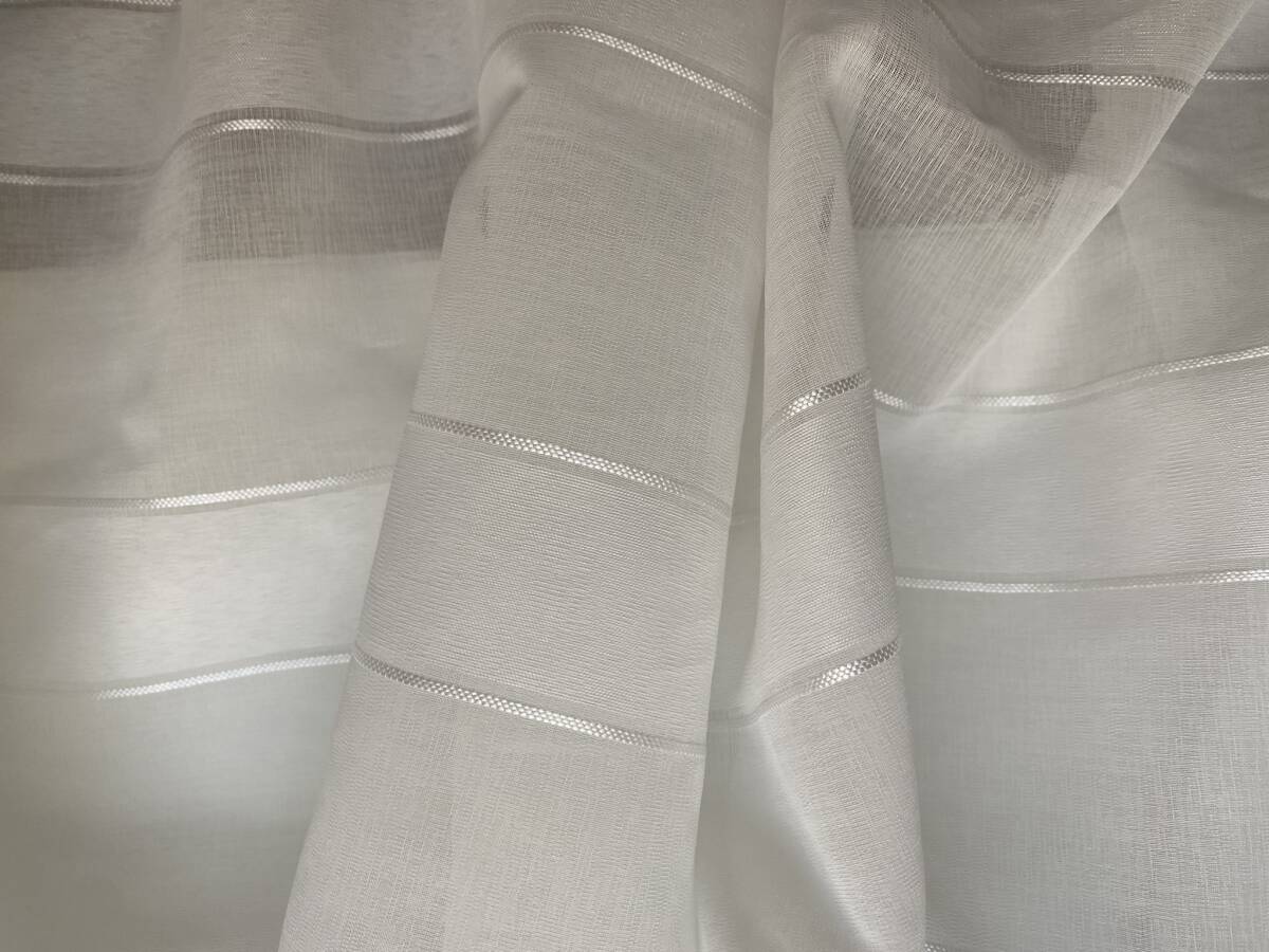 生地はシャリ感のあるザクッとしたナチュラルなテイスト、織りで濃淡の横ストライプ、キラキラとしたラインがアクセントできれいです。